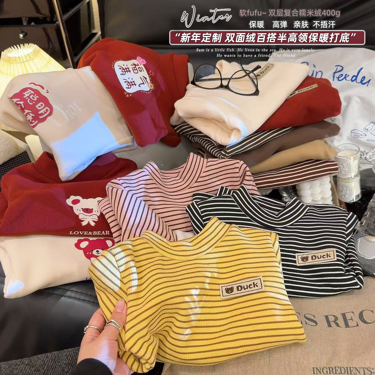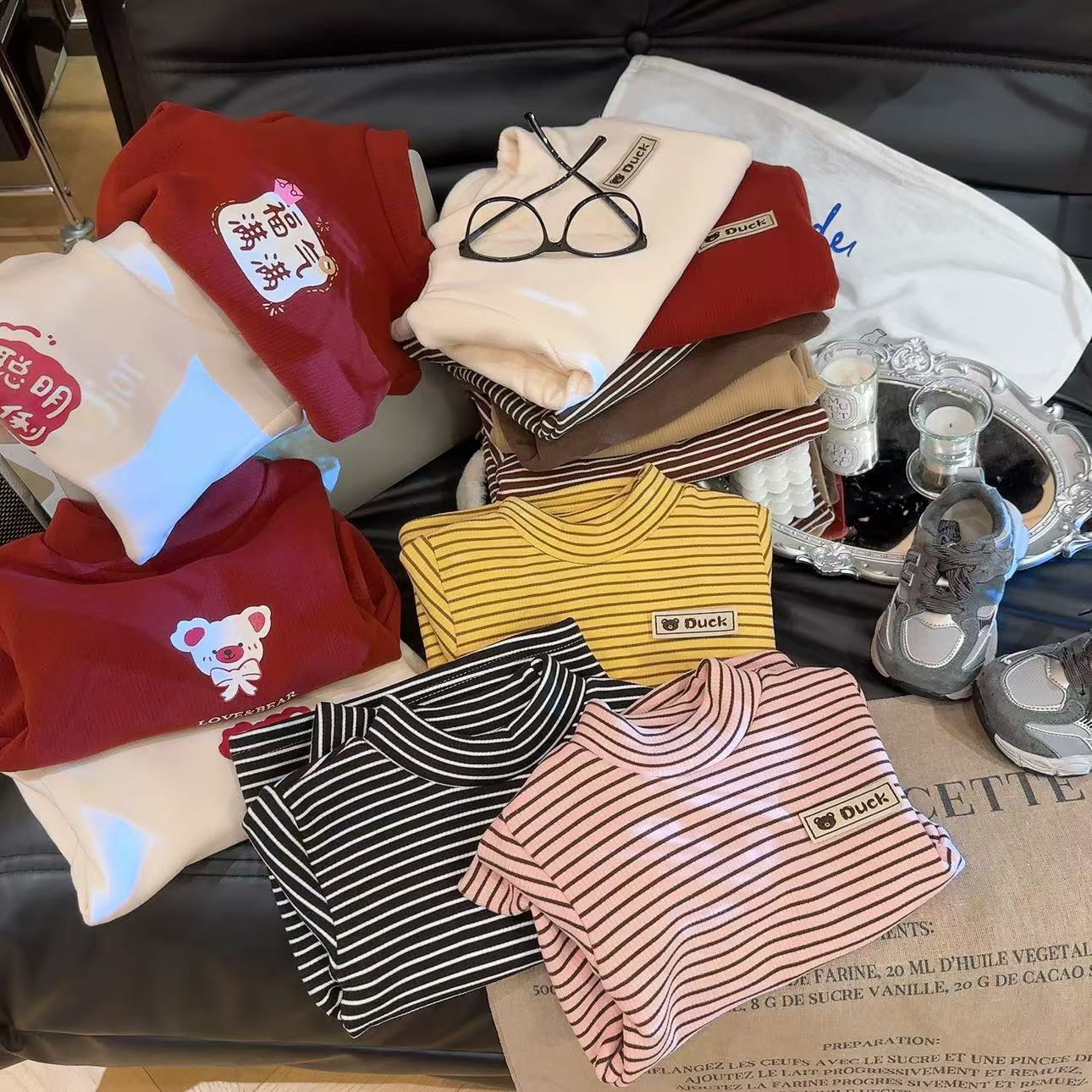 아동복 긴팔 티셔츠 하프 터틀넥 가을 겨울 아동용 바닥 새로운 스타일 소녀 소년 축제 베이비 탑 따뜻하고 트렌디 0스토어 가기