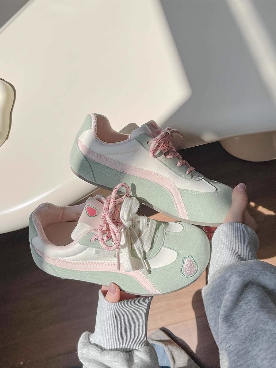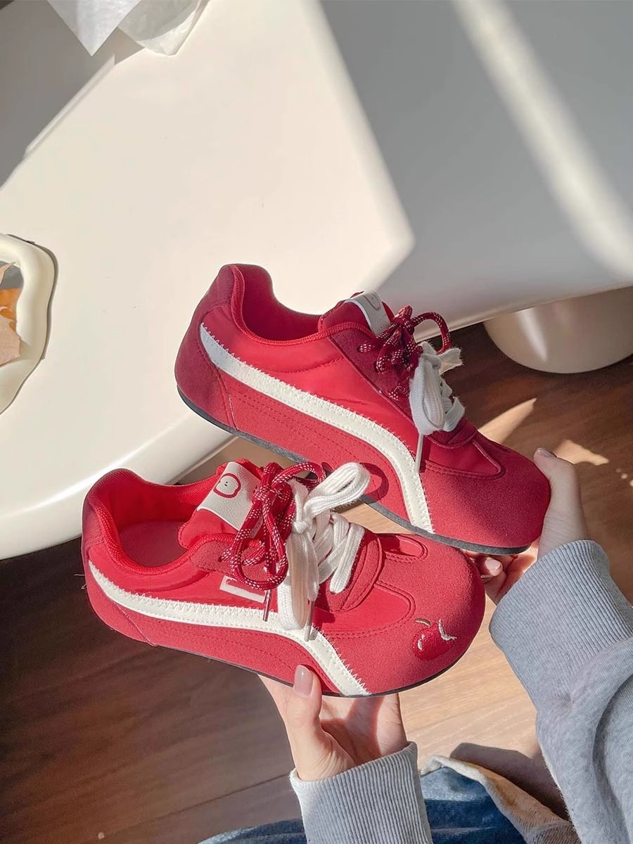 여성을위한 빨간색 도덕 훈련 신발 2025 여름 새로운 통기성 플랫 신발 복고풍 다목적 캐주얼 스포츠 흰색 신발
