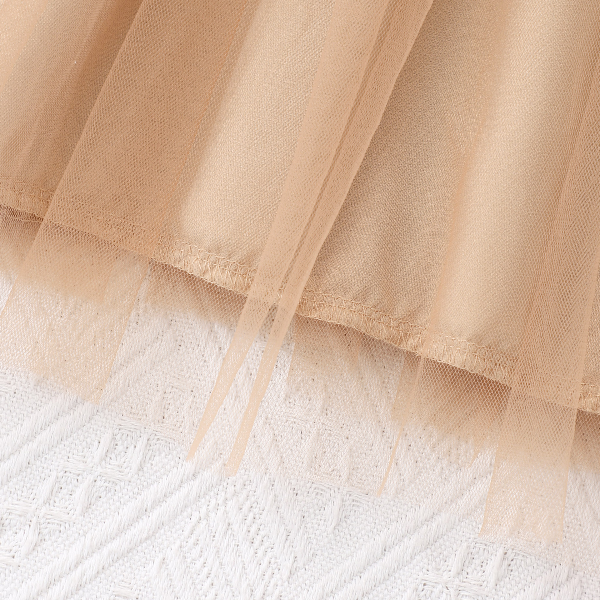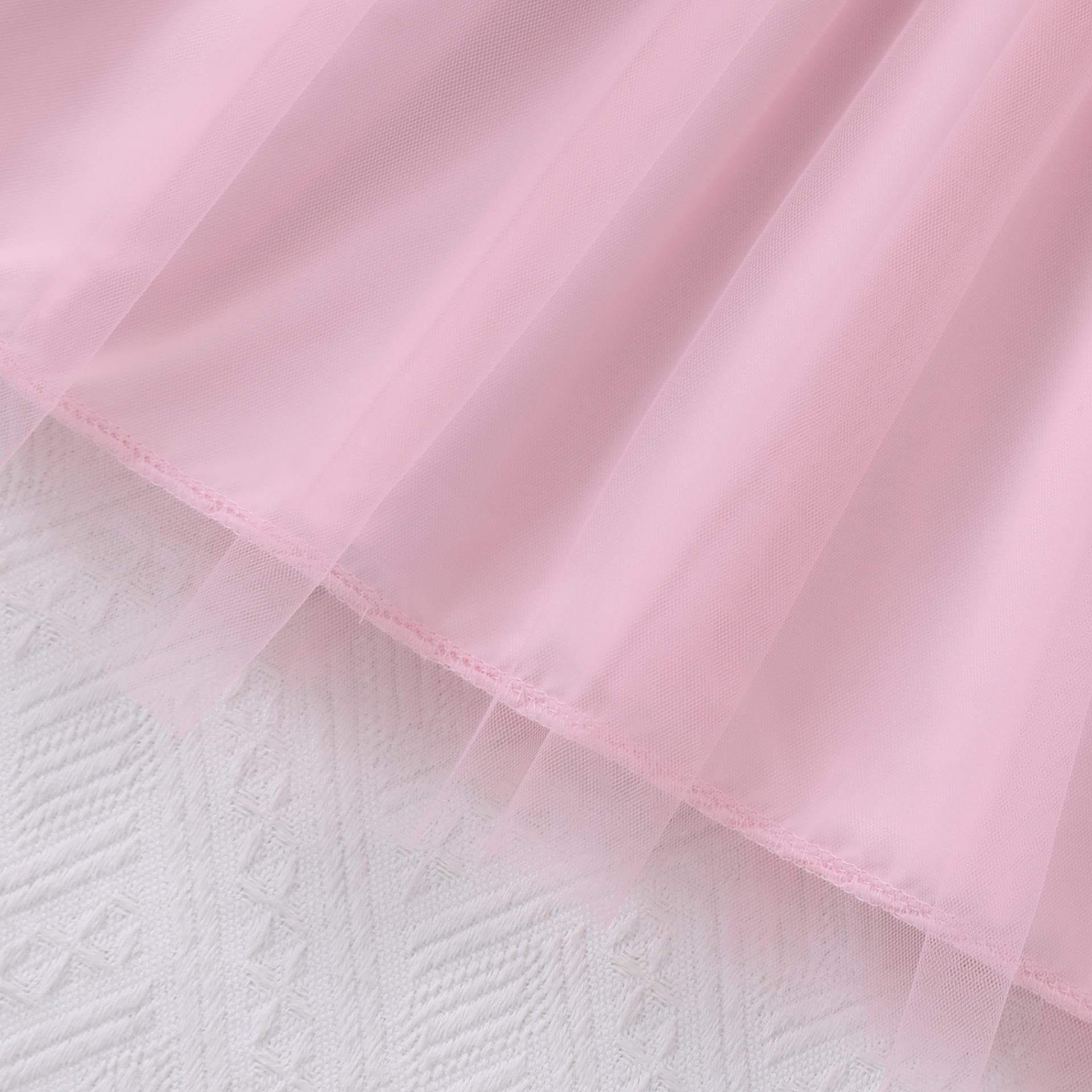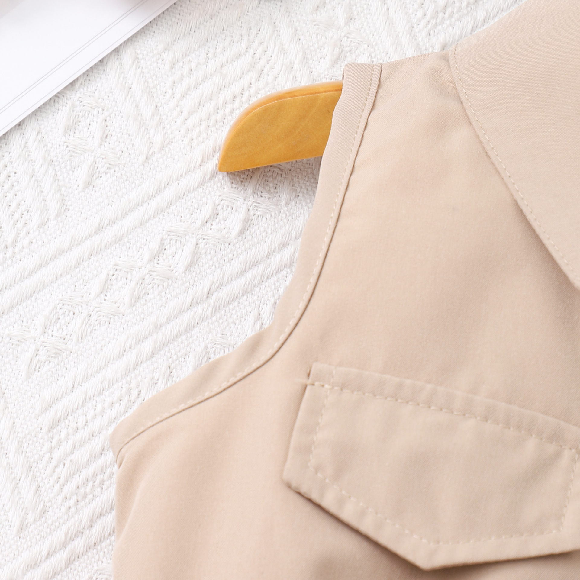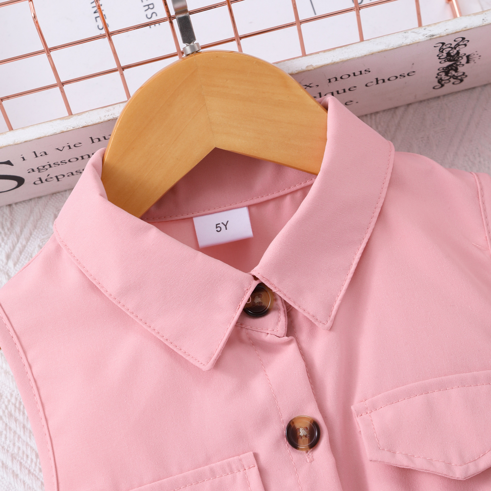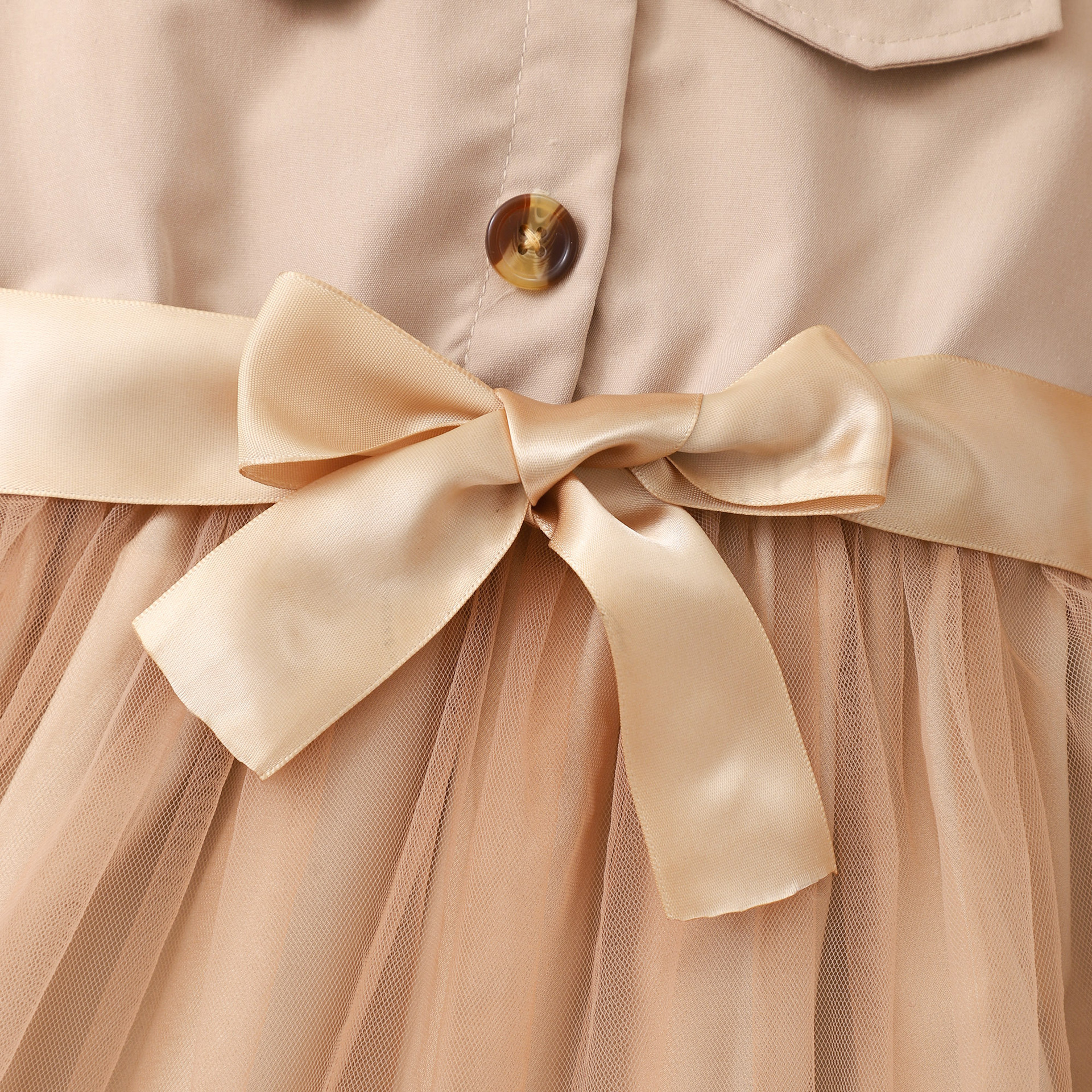 여아(사이즈) 드레스, 솔리드 컬러 민소매 라펠 메쉬 드레스, 직조 벨트 포함