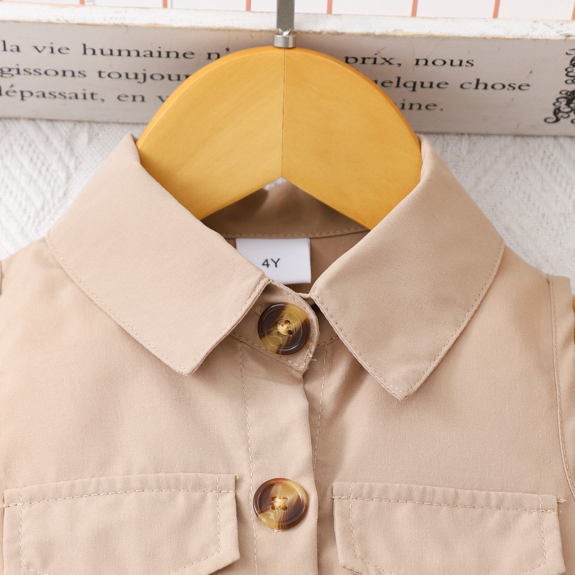 여아(사이즈) 드레스, 솔리드 컬러 민소매 라펠 메쉬 드레스, 직조 벨트 포함스토어 가기