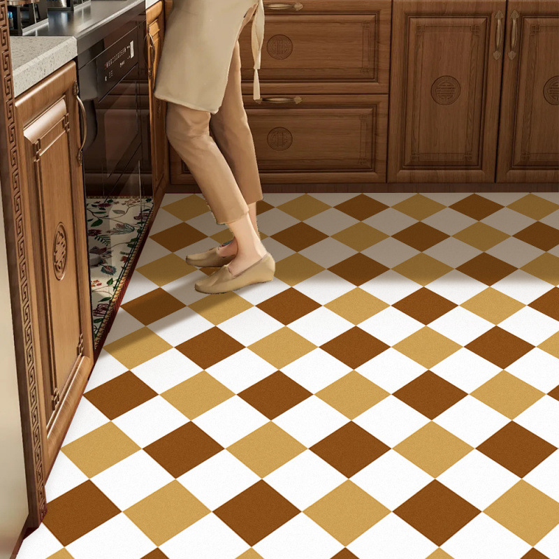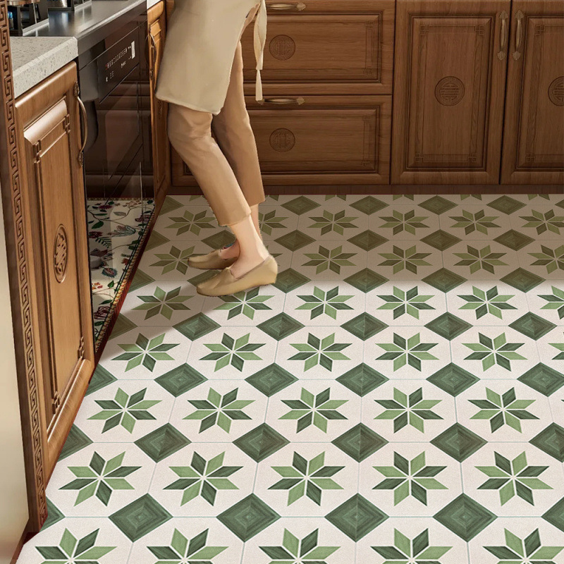 세척이 필요 없는 복고풍 스타일의 주방 바닥 매트, 미끄럼 방지, 기름 방지, 닦아낼 수 있는, 두꺼워지고 방수 및 먼지 방지, PVC 전용스토어 가기