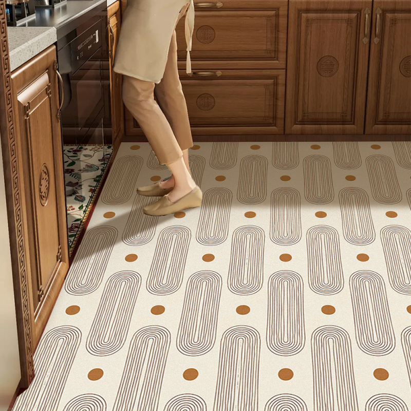 세척이 필요 없는 복고풍 스타일의 주방 바닥 매트, 미끄럼 방지, 기름 방지, 닦아낼 수 있는, 두꺼워지고 방수 및 먼지 방지, PVC 전용
