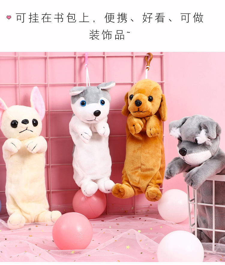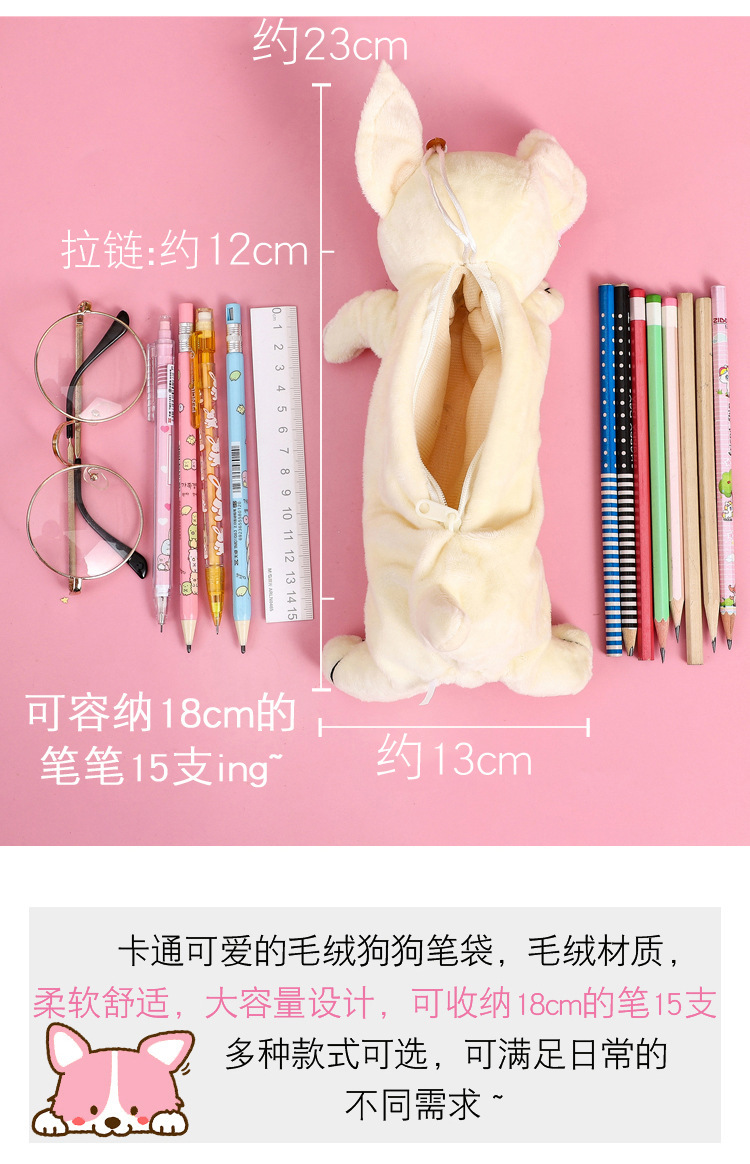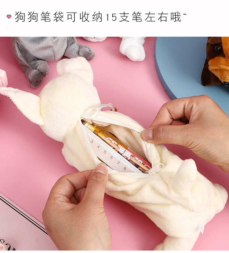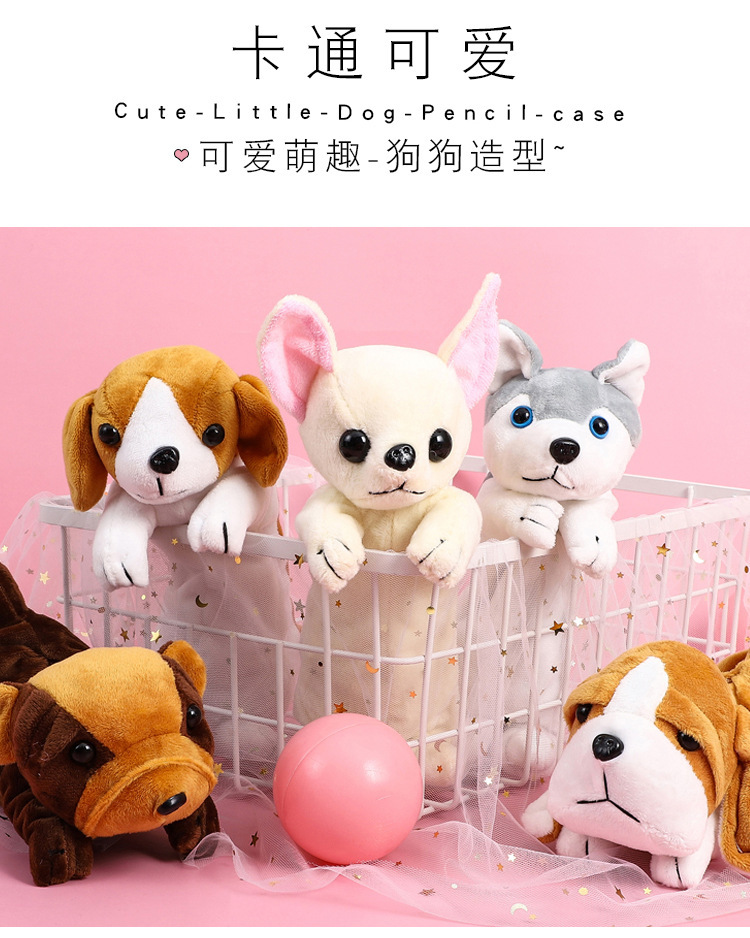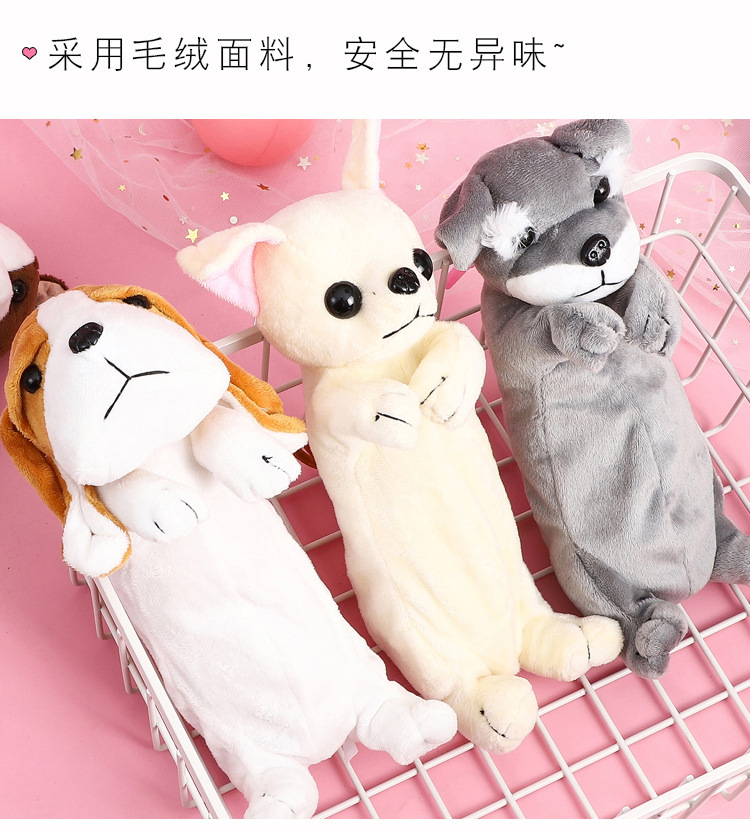 어린이 강아지 창조적 인 귀여운 만화 플러시 연필 가방 소녀 문구 상품 유치원 초등 학생 연필 가방