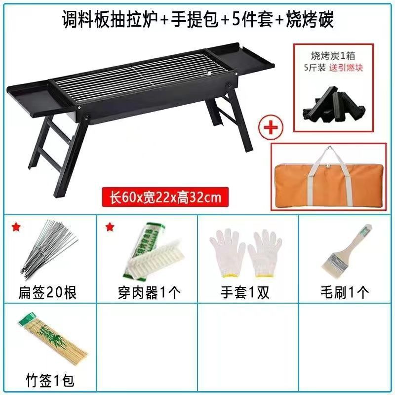 바베큐 그릴 야외 숯 휴대용 스토브 가정용 휴대용 꼬치 두꺼운 바베큐 접이식 도구 세트스토어 가기