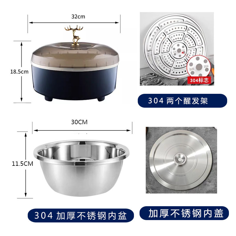 • 그린 온도 조절기 + 304 스테인리스 라이너 + 304 이중층 발효 랙 + 내부 커버 [2024 신형 입체 가열]