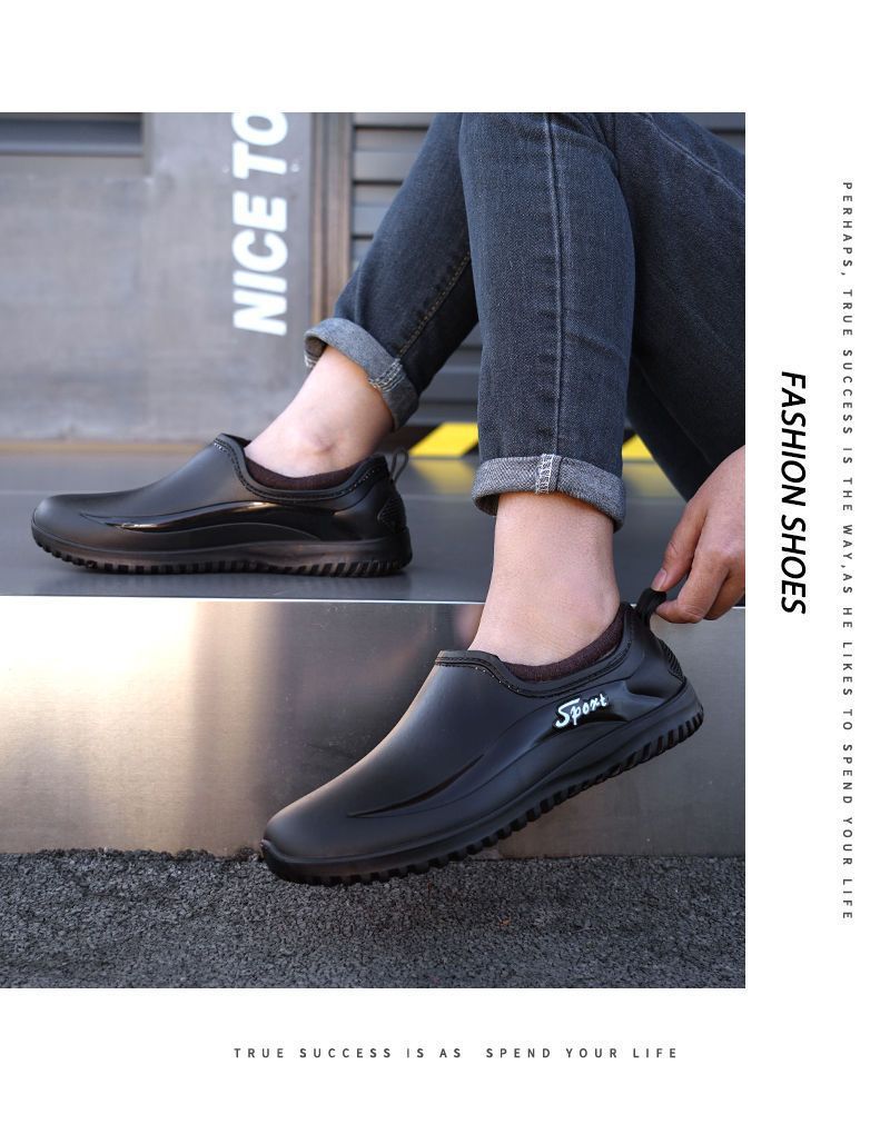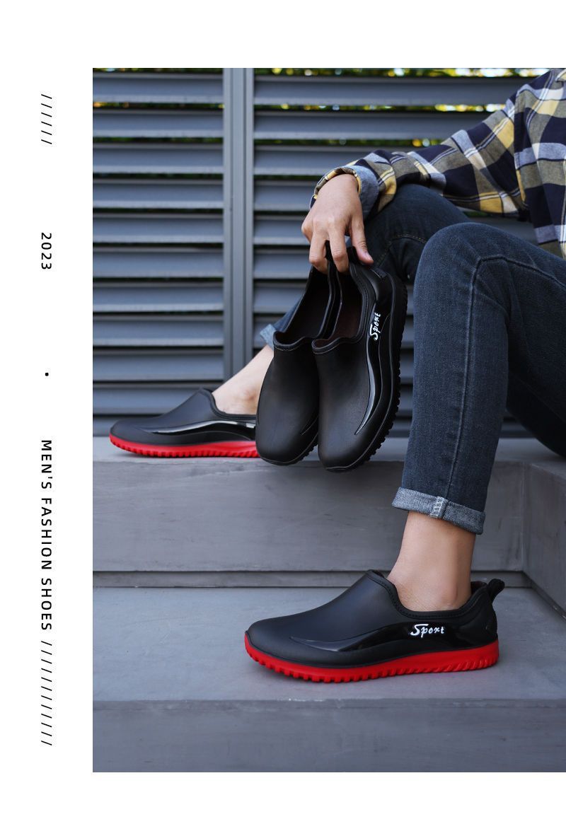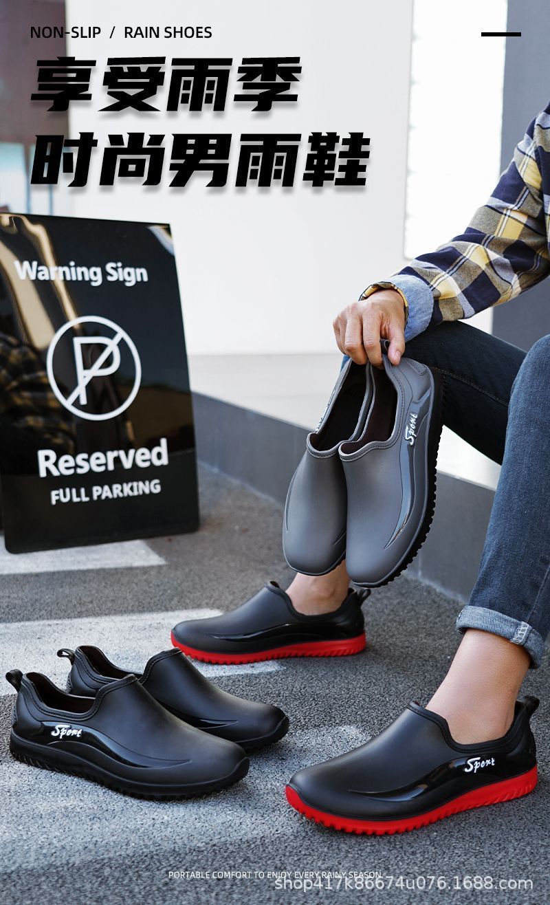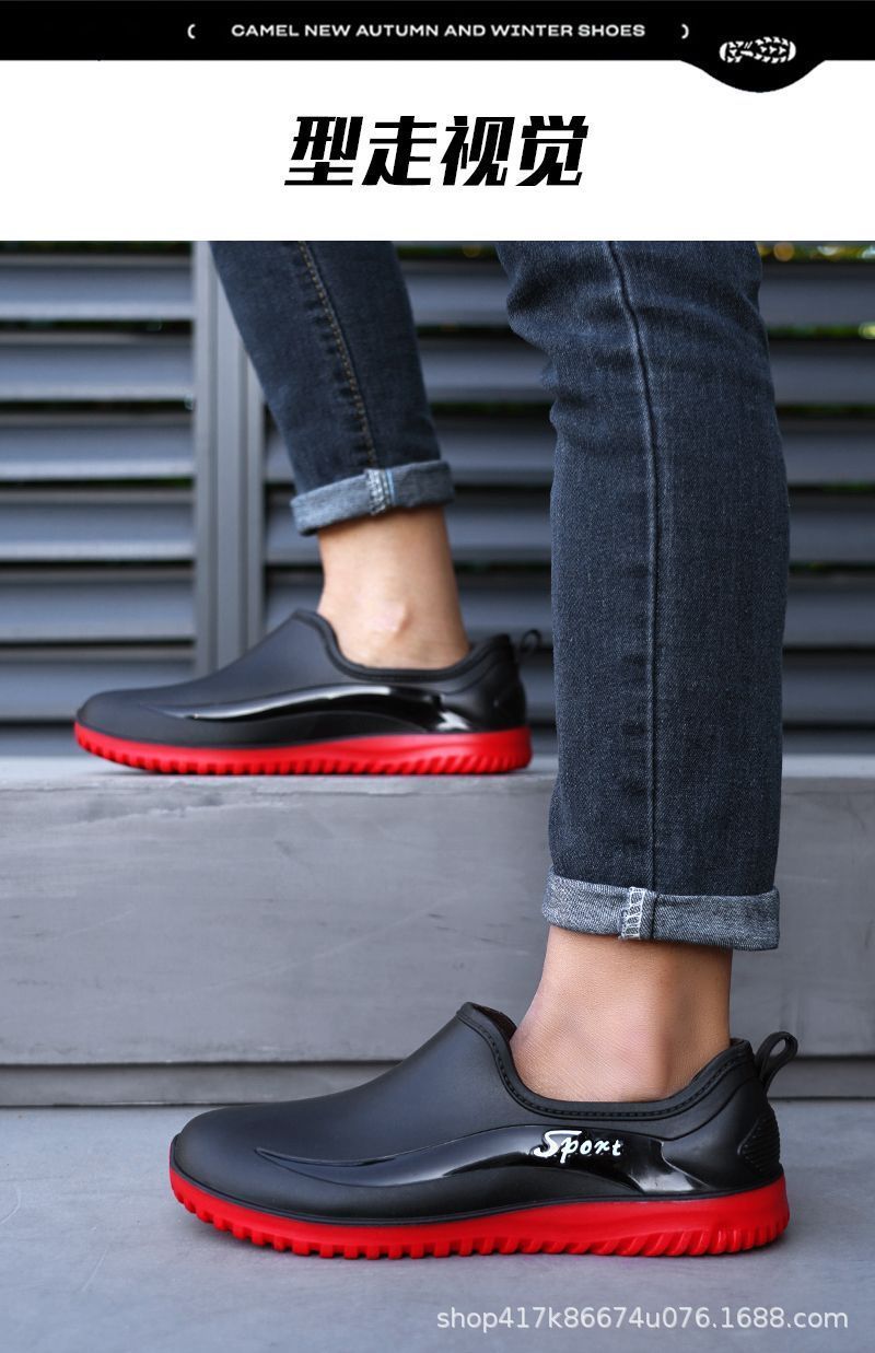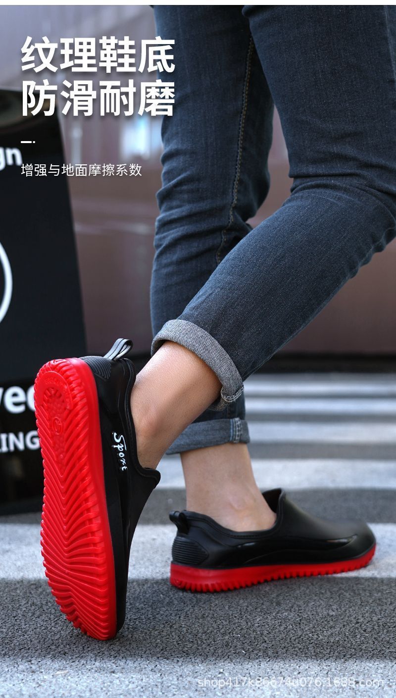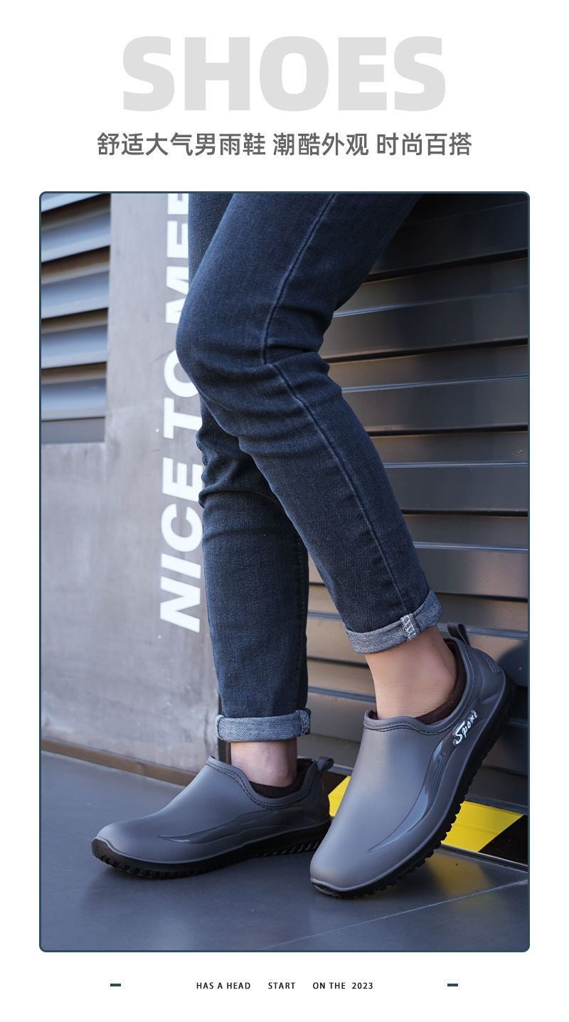 남성용 방수 신발, 레인부츠, 미끄럼 방지 장화, 짧은 튜브 패션 고무신, 한국식 슬립온 도매 국경 간 배송 가능스토어 가기