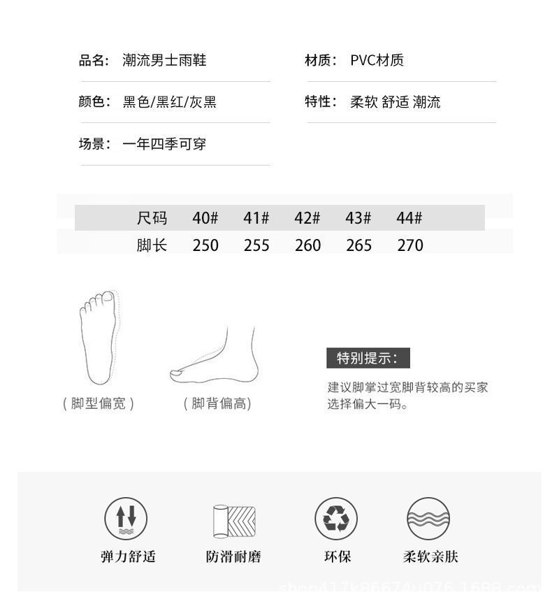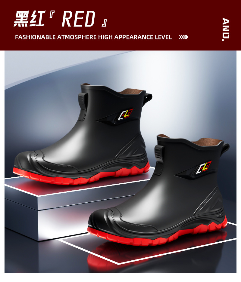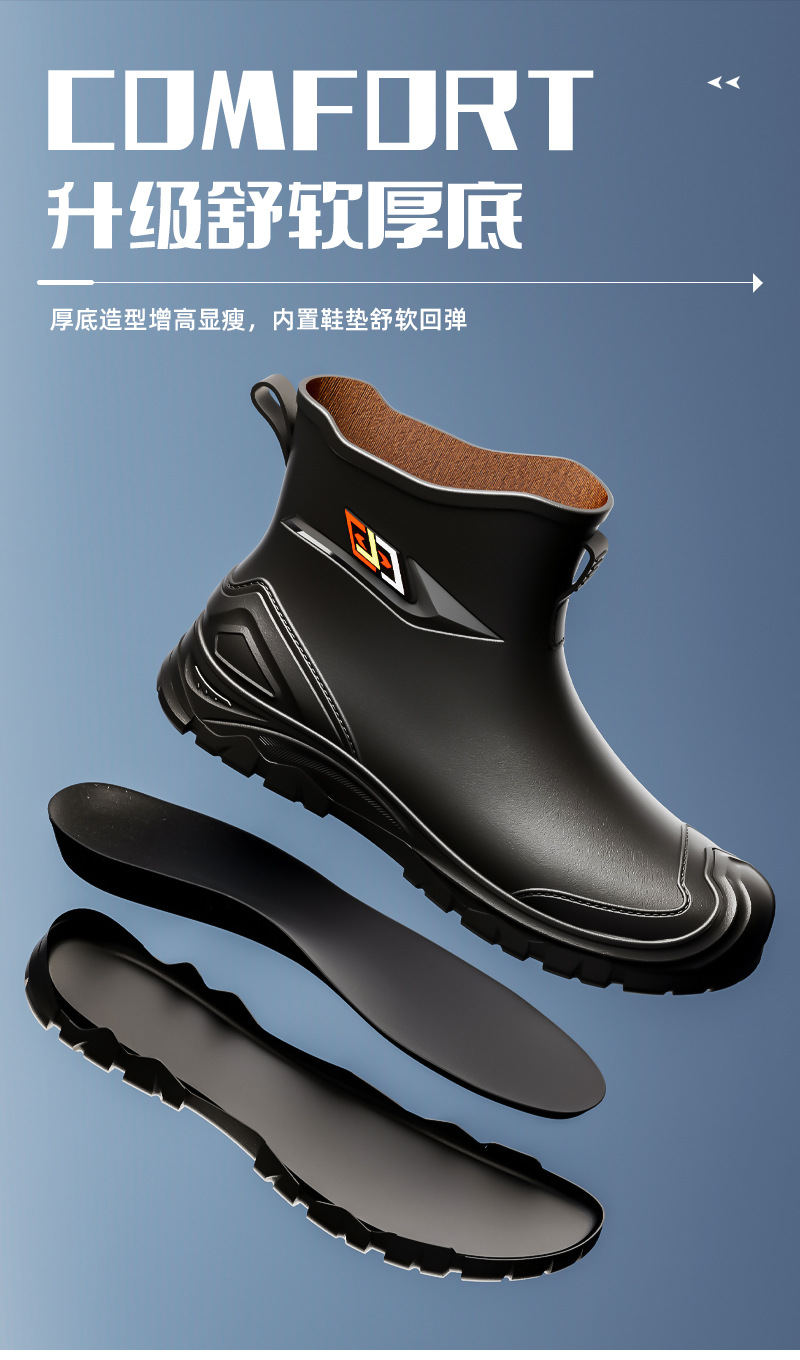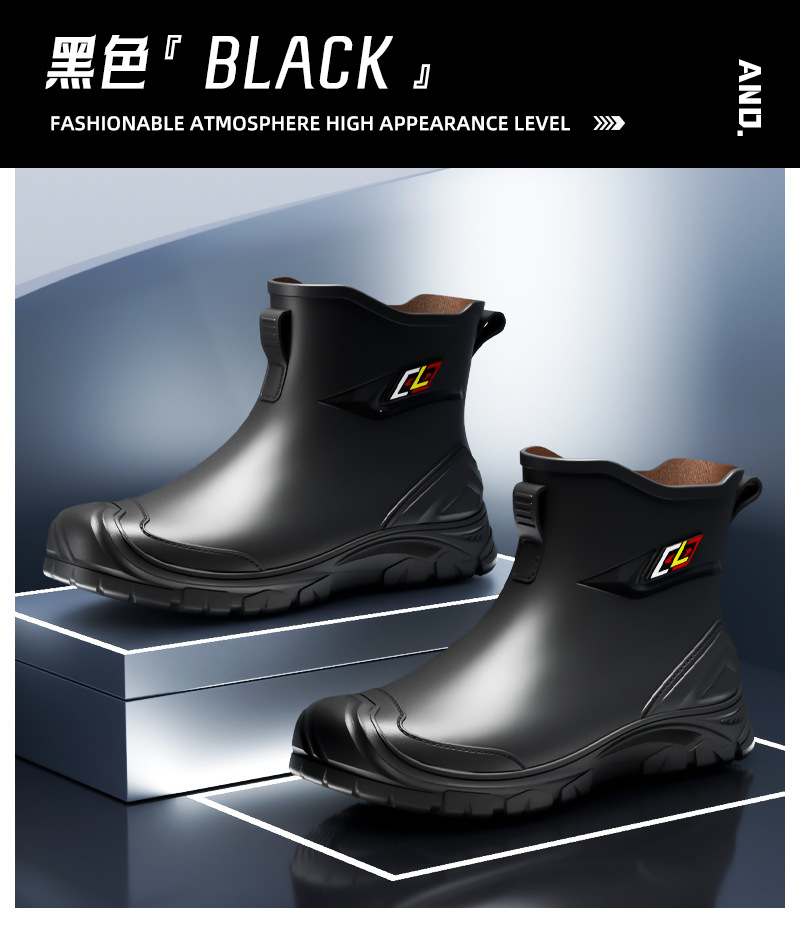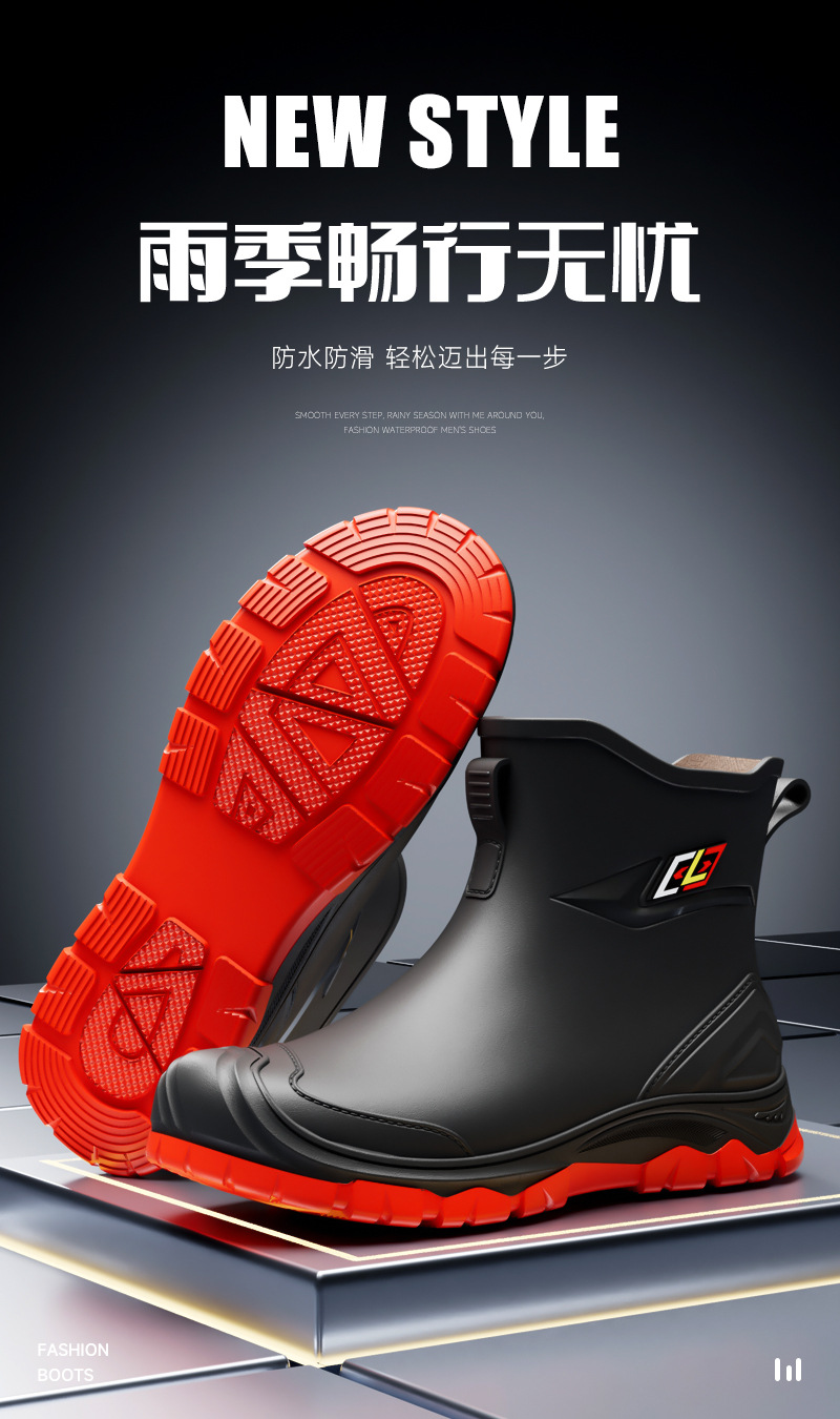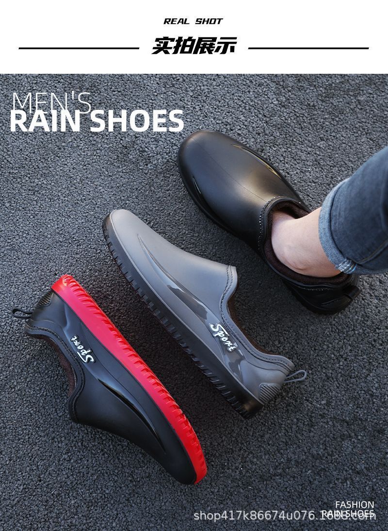 남성용 방수 신발, 레인부츠, 미끄럼 방지 장화, 짧은 튜브 패션 고무신, 한국식 슬립온 도매 국경 간 배송 가능스토어 가기