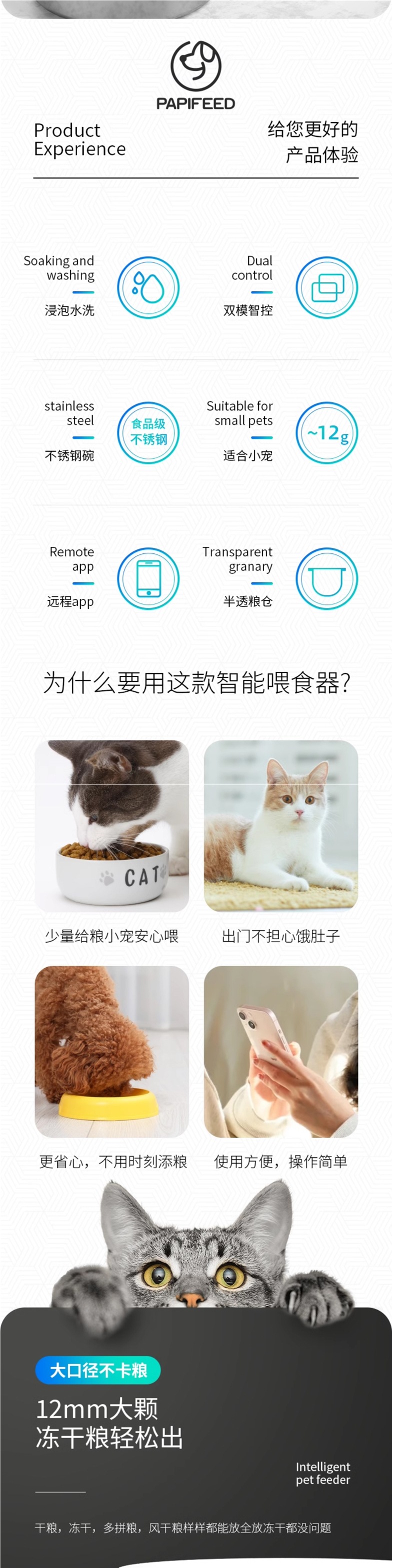 PAPIFEED 고양이 자동 급식기 애완동물 지능형 타이밍 및 정량 급식기 개밥 셀프 서비스 급식기스토어 가기