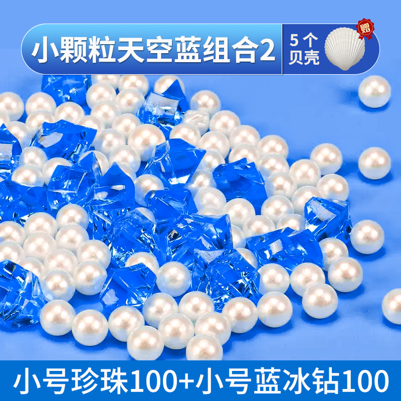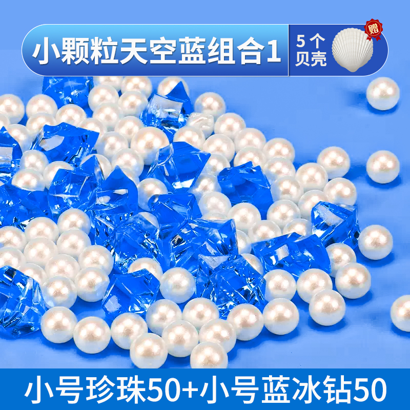 • [작은 입자 스카이블루 조합 1] 작은 진주 50개 + 작은 진한 파란색 다이아몬드 50개, 무료 조개 5개
