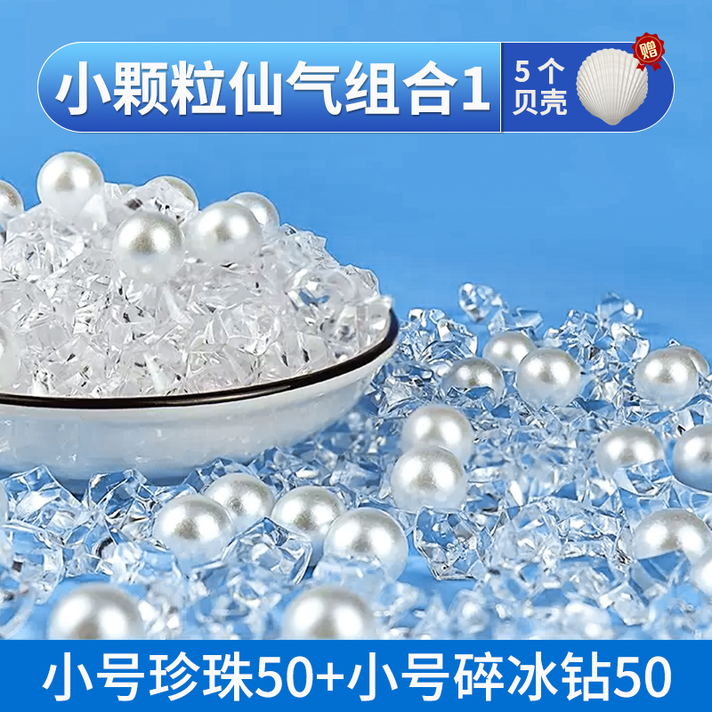 • [작은 입자 투명 요정 공기 조합 2] 작은 진주 100개 + 작은 얼음 다이아몬드 100개, 무료 조개 5개