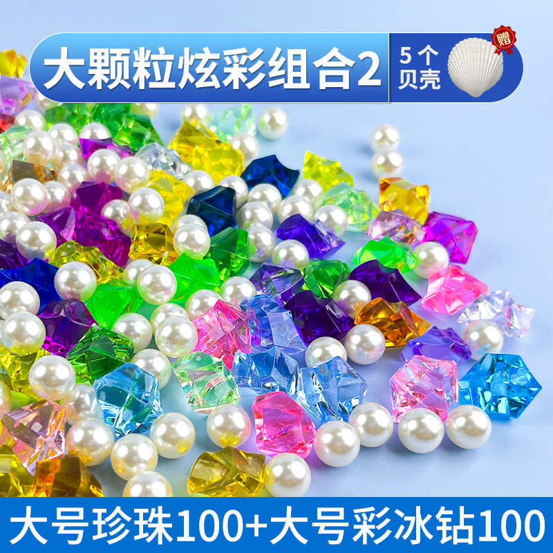• [큰 입자의 다채로운 조합 2] 큰 진주 100개 + 큰 컬러 다이아몬드 100개, 무료 조개 5개