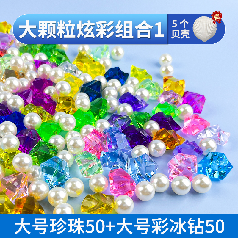 • [큰 입자의 다채로운 조합 1] 큰 진주 50개 + 큰 컬러 다이아몬드 50개, 무료 조개 5개