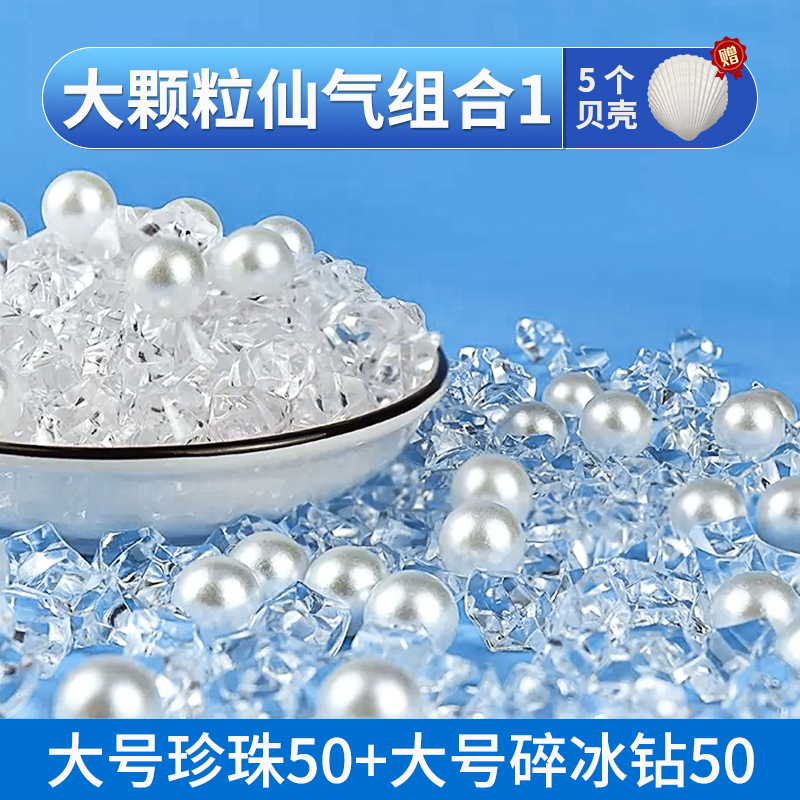 • [큰 입자 투명 요정 공기 조합 1] 큰 진주 50개 + 큰 얼음 다이아몬드 50개 및 무료 조개 5개