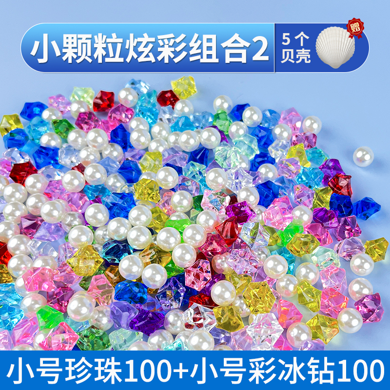 • [작은 입자의 다채로운 조합 2] 작은 진주 100개 + 작은 컬러 다이아몬드 100개, 무료 조개 5개