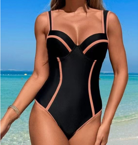 여성용 신상 수영복, 하이엔드 원피스 수영복, 흑백 스트라이프, 하이웨이스트 섹시 비키니, 배 커버, 슬리밍, 보수적인 비치 수영복