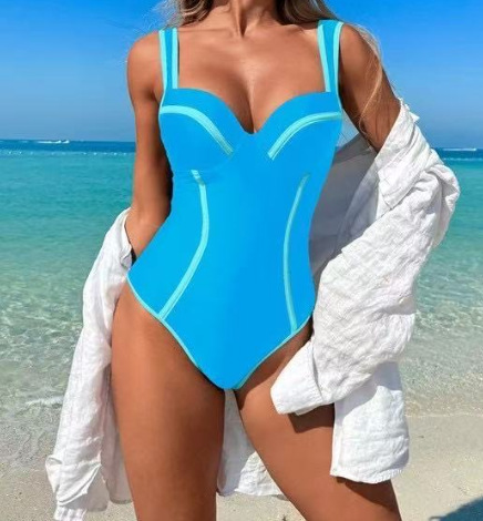 여성용 신상 수영복, 하이엔드 원피스 수영복, 흑백 스트라이프, 하이웨이스트 섹시 비키니, 배 커버, 슬리밍, 보수적인 비치 수영복스토어 가기