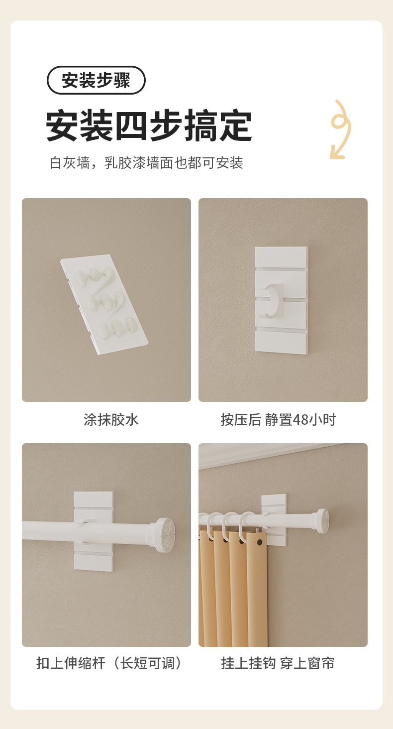 렌탈하우스용 커튼 설치를 위한 구멍이 없는 경제적인 침실 완전 암막 커튼봉, 새로운 스타일의 단면창을 위한 간단한 세트스토어 가기