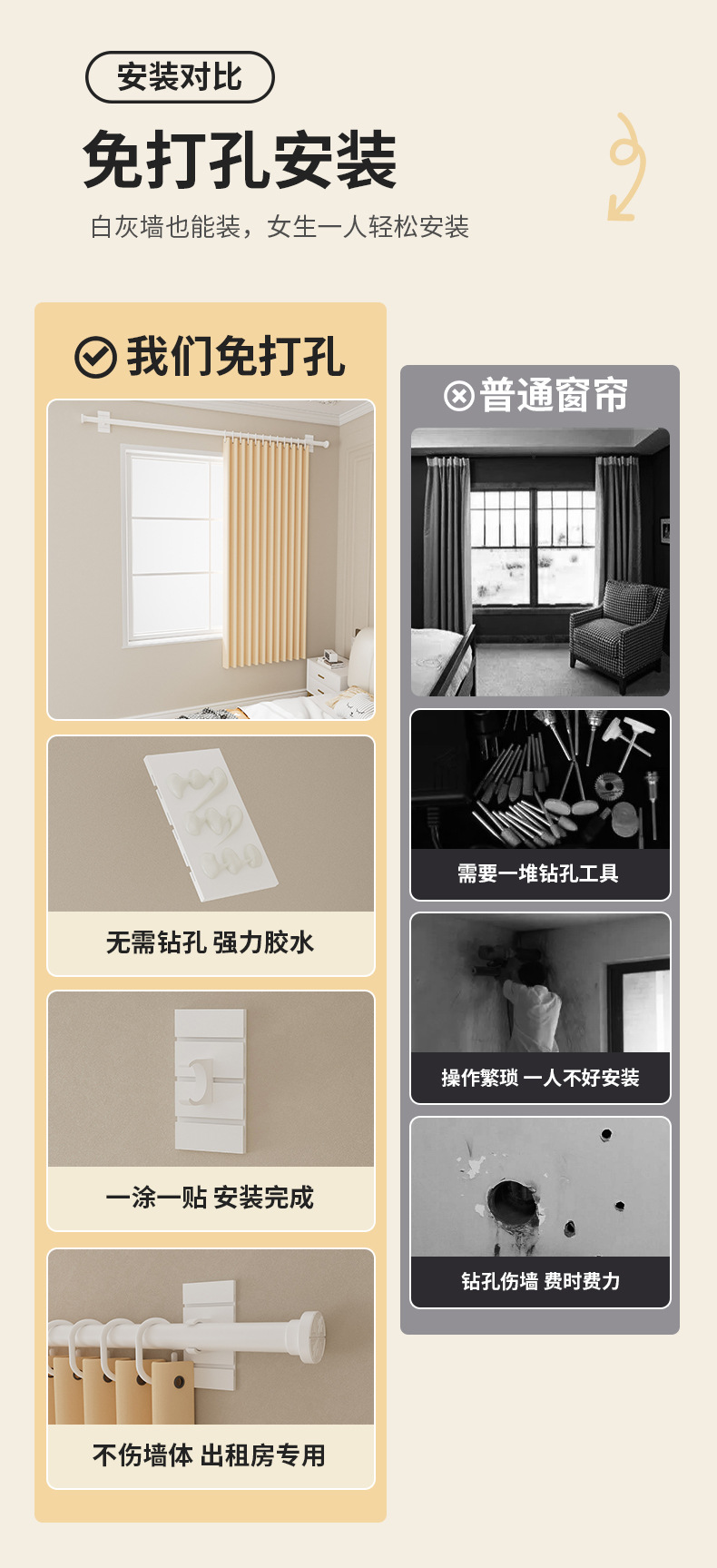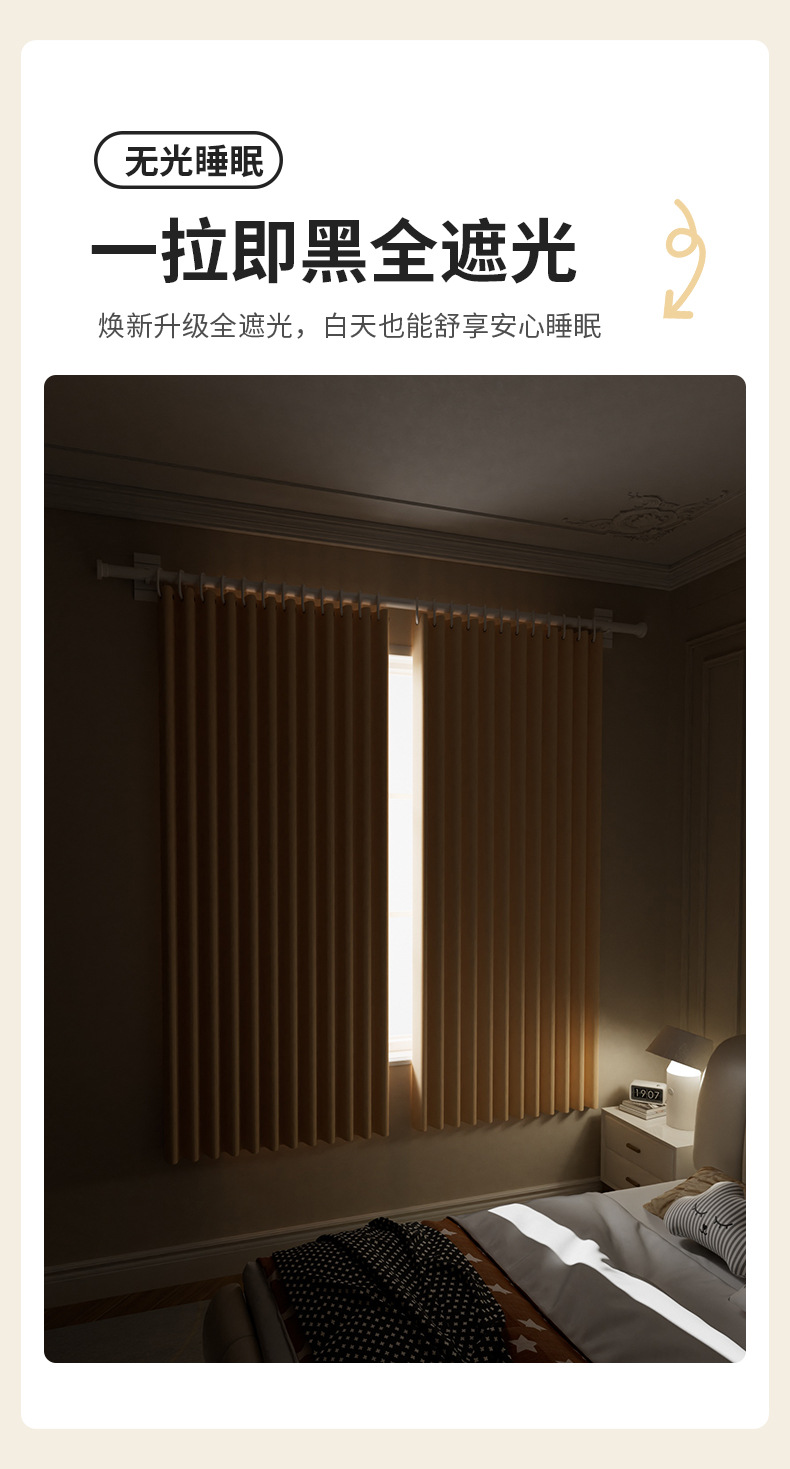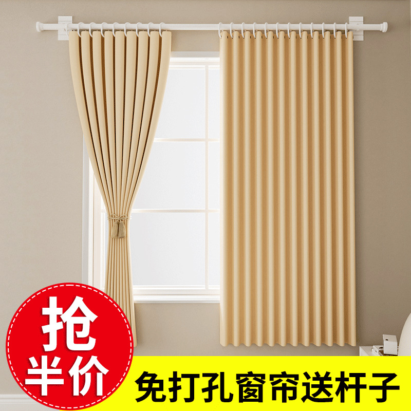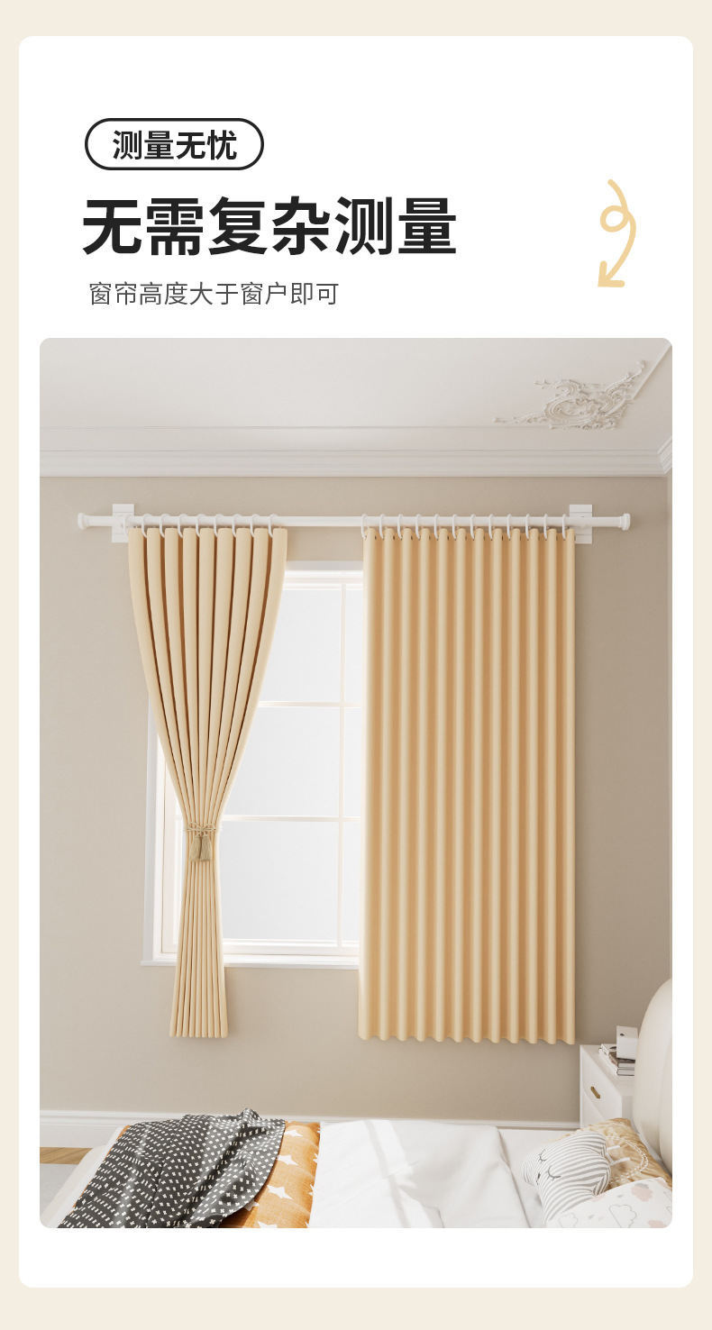 렌탈하우스용 커튼 설치를 위한 구멍이 없는 경제적인 침실 완전 암막 커튼봉, 새로운 스타일의 단면창을 위한 간단한 세트