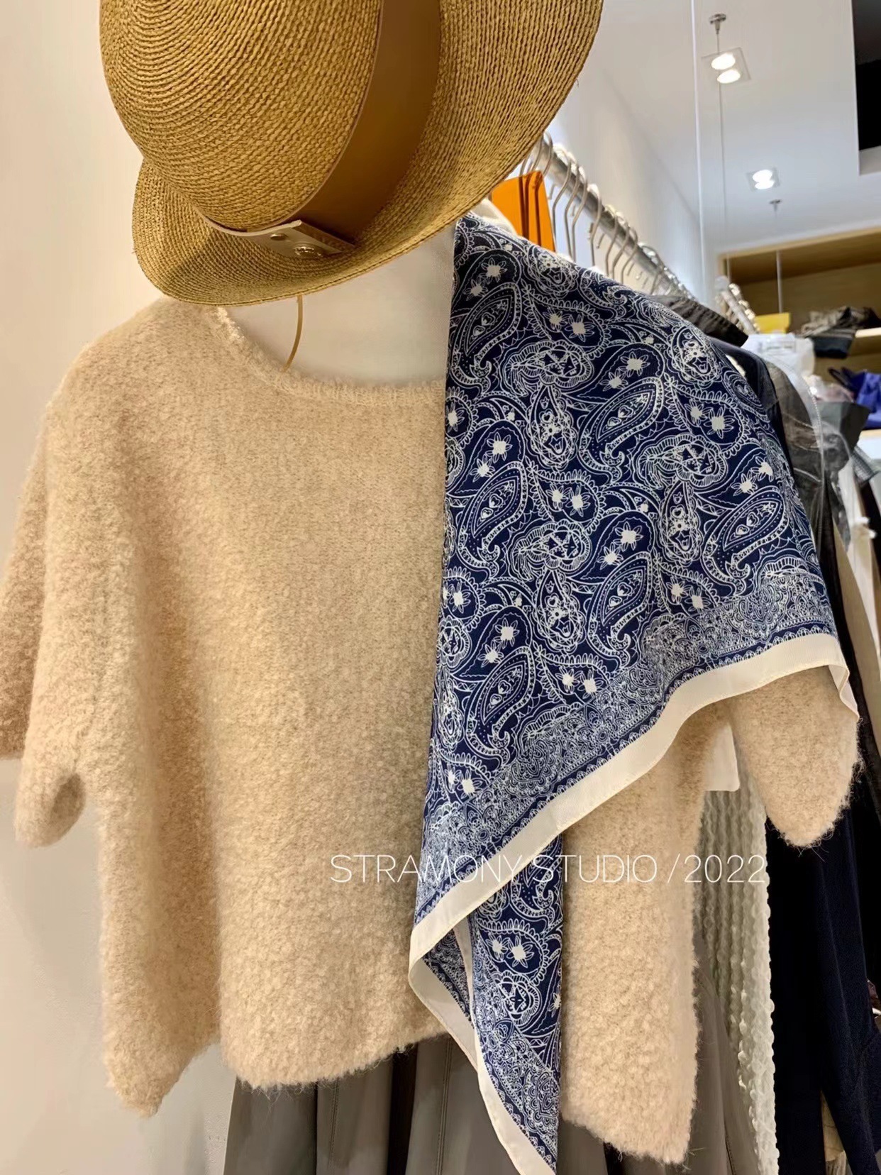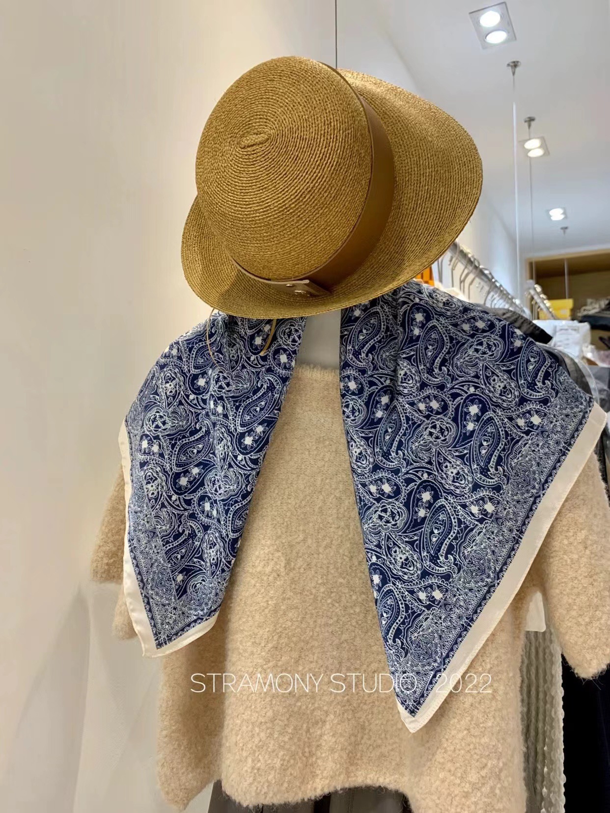 한국 네이비 캐슈 플라워 스카프, 작은 사각 스카프, 여성용 레이어드 하이엔드 액세서리, 벨트, 넥타이, 셔츠스토어 가기