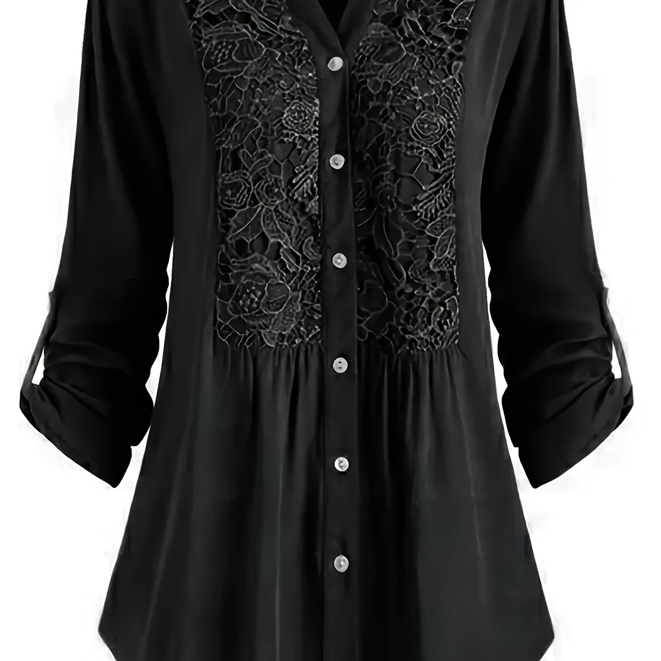 여성용 솔리드 컬러 버튼 오픈 V 넥 긴팔 셔츠스토어 가기
