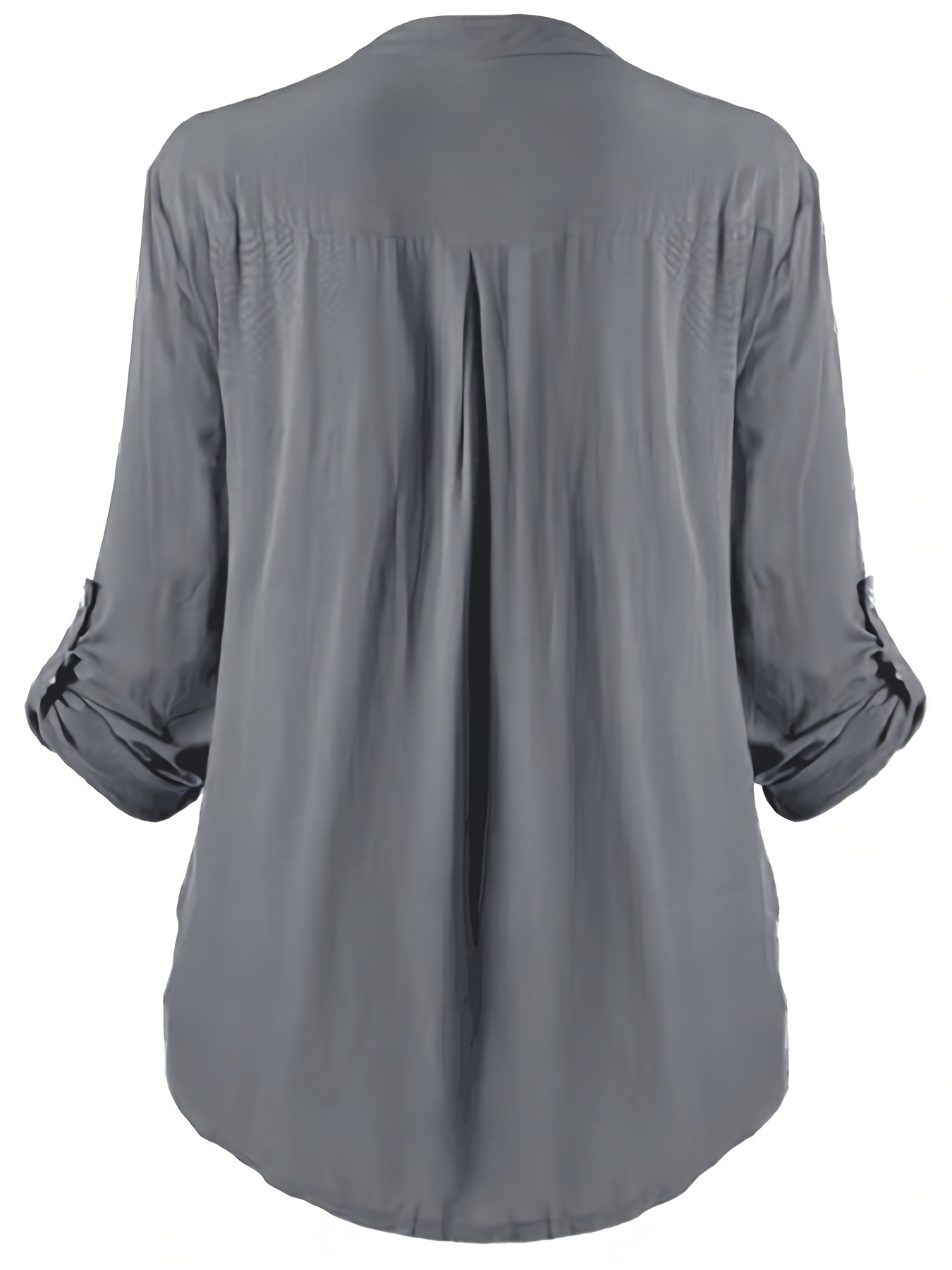 여성용 솔리드 컬러 버튼 오픈 V 넥 긴팔 셔츠