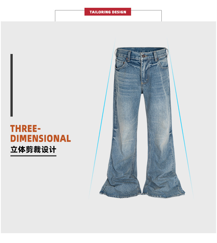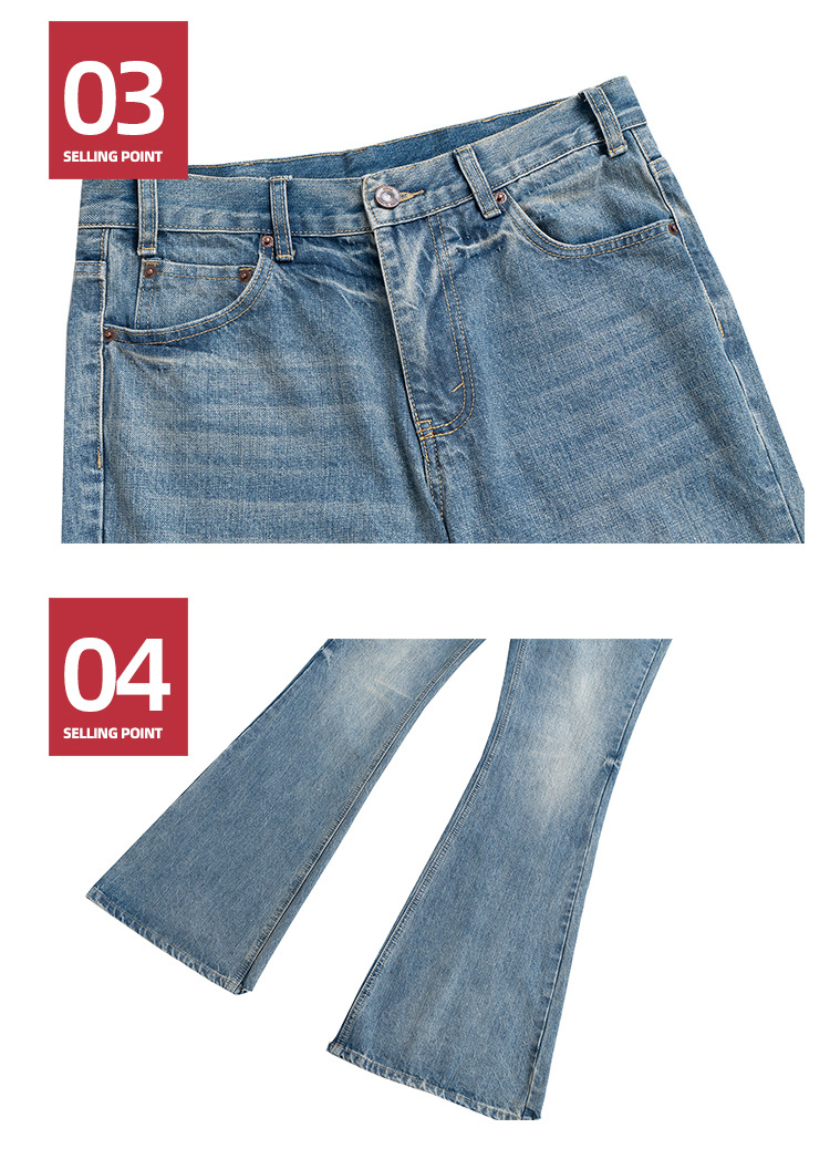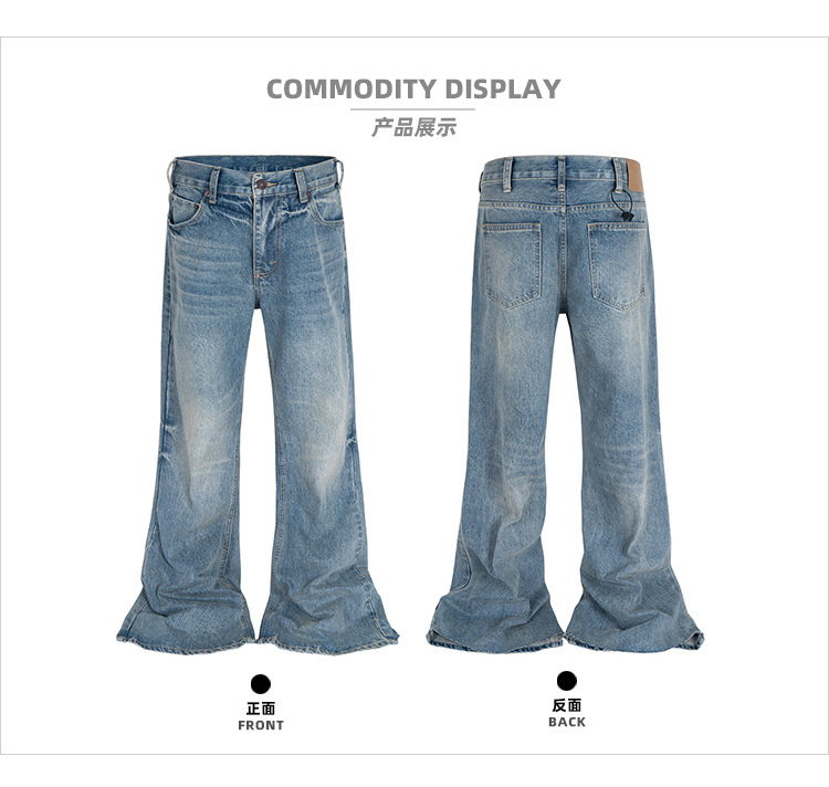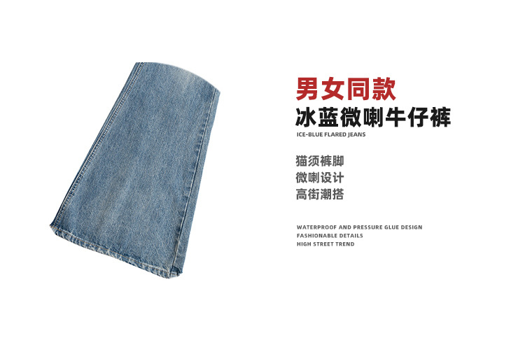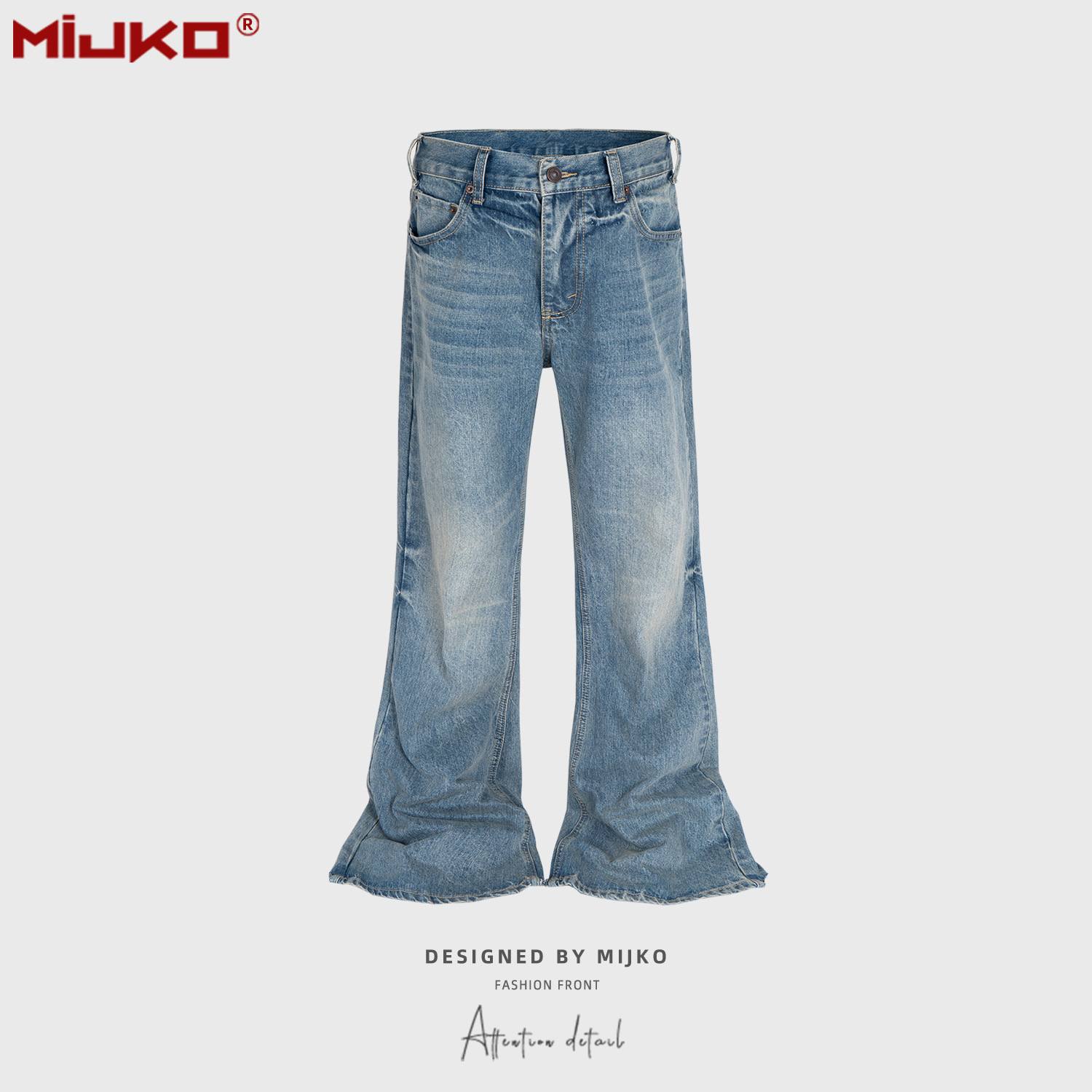 MIJKO 남녀공용 와이드 팬츠, 남녀공용 워싱 화이트 라마르 아이스 블루 마이크로 플레어 청바지, 트렌디스토어 가기