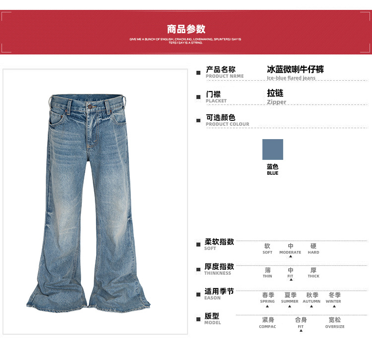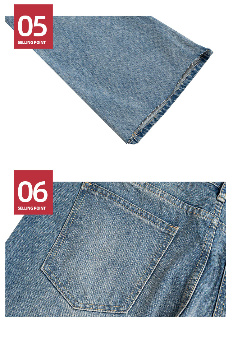 MIJKO 남녀공용 와이드 팬츠, 남녀공용 워싱 화이트 라마르 아이스 블루 마이크로 플레어 청바지, 트렌디