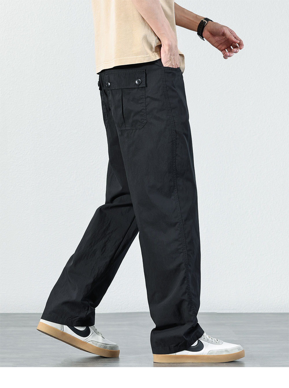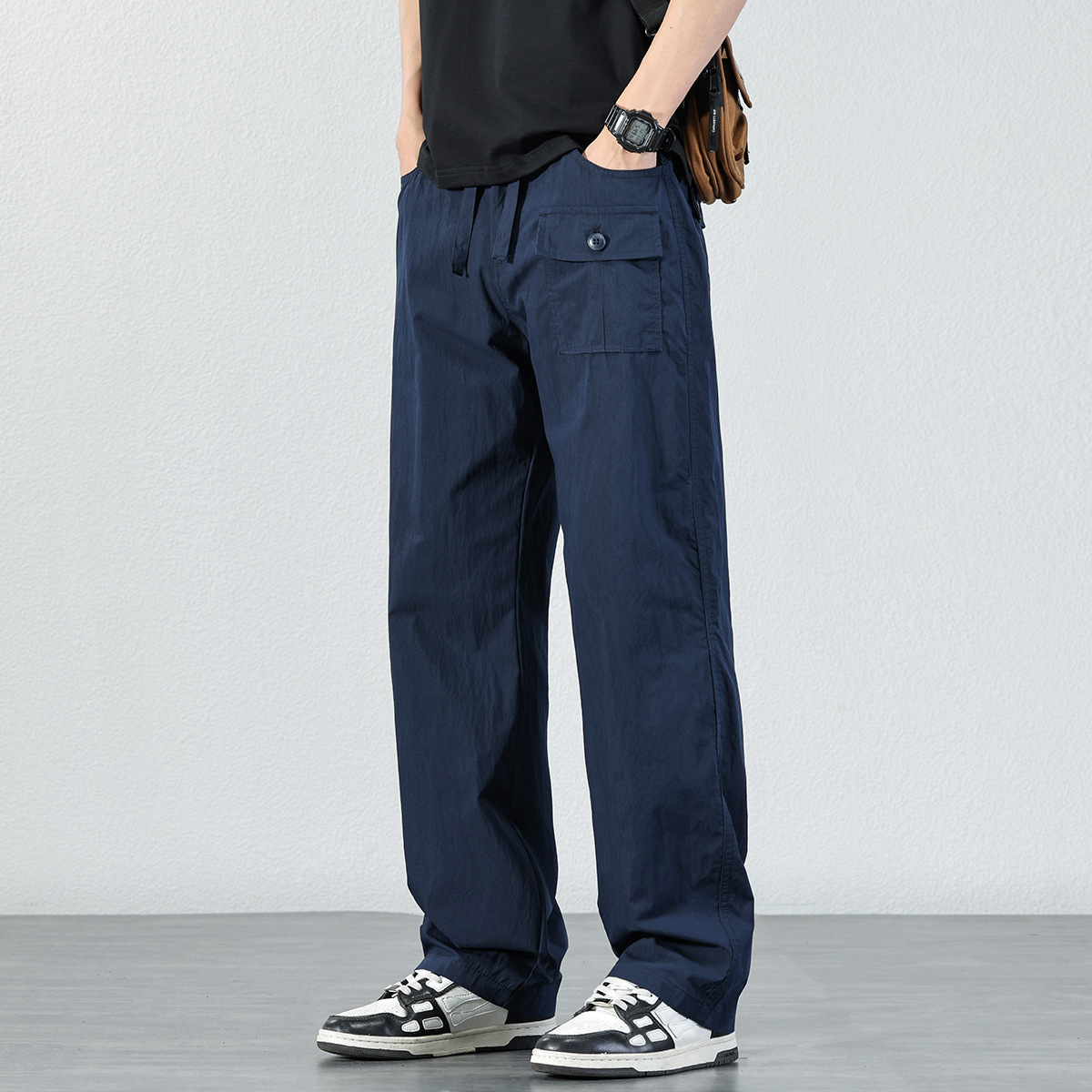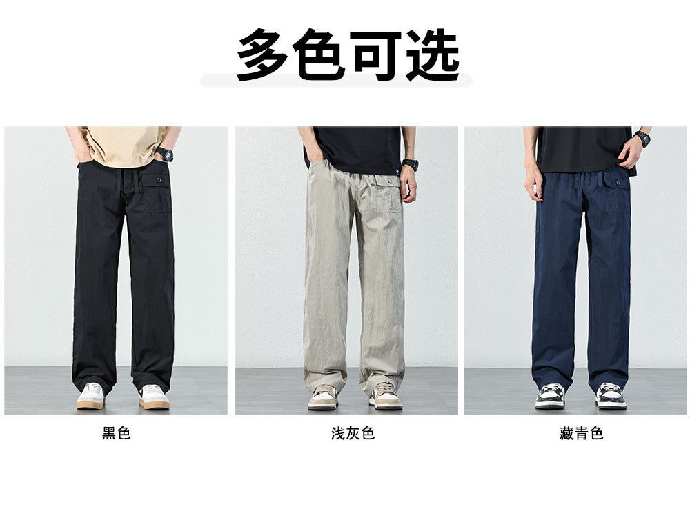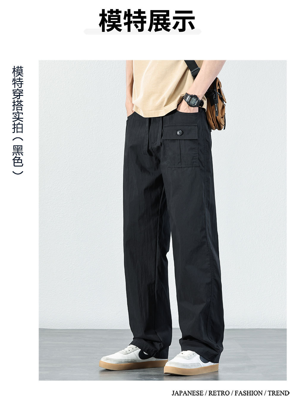 HAOZHI 아이스 실크 속건성 바지 남성용 2025 여름 루즈 스트레이트 캐주얼 바지 야외 등산 파라슈트 바지