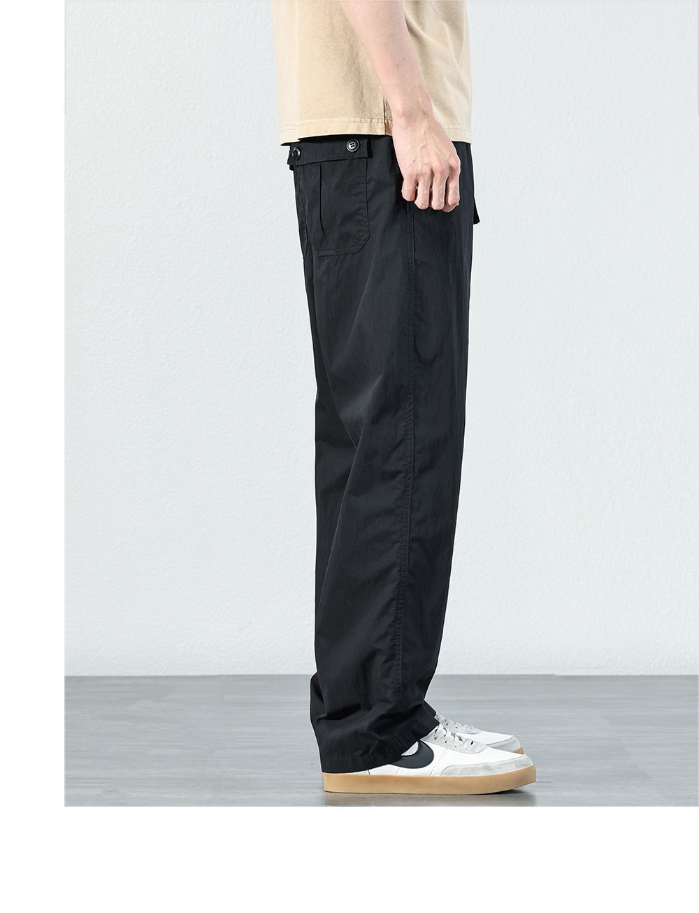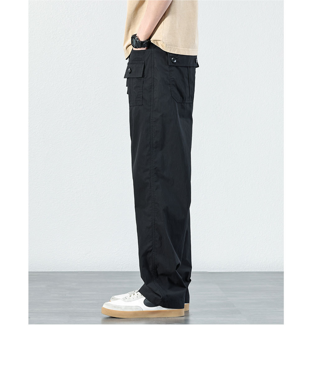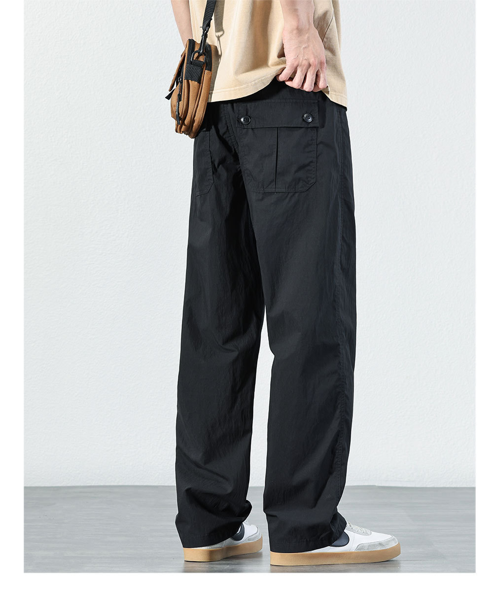 HAOZHI 아이스 실크 속건성 바지 남성용 2025 여름 루즈 스트레이트 캐주얼 바지 야외 등산 파라슈트 바지