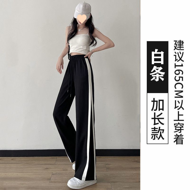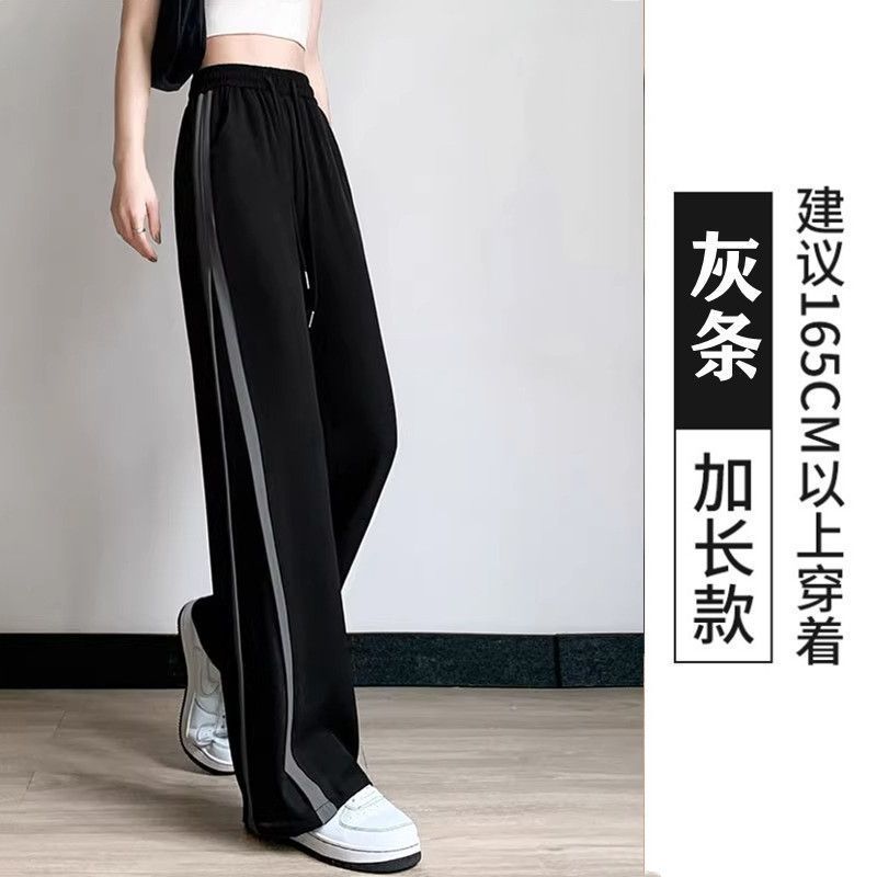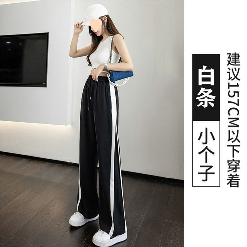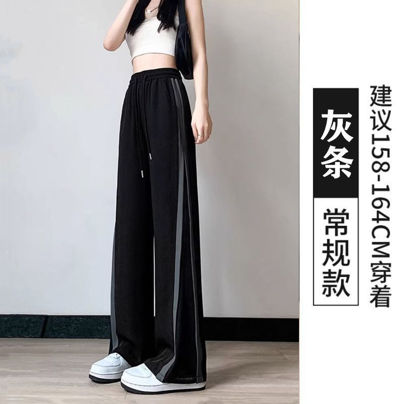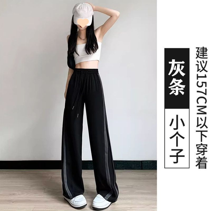 여성용 여름 얇은 검은색 와이드 팬츠, 작은 사람들을 위한 루즈한 하이웨이스트 스트레이트 아이스 실크 스트라이프 캐주얼 스포츠 바지스토어 가기