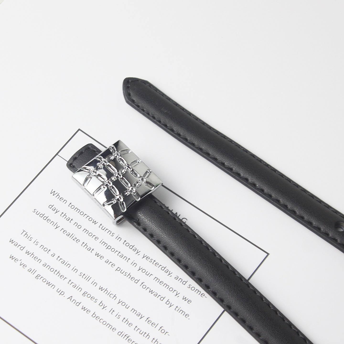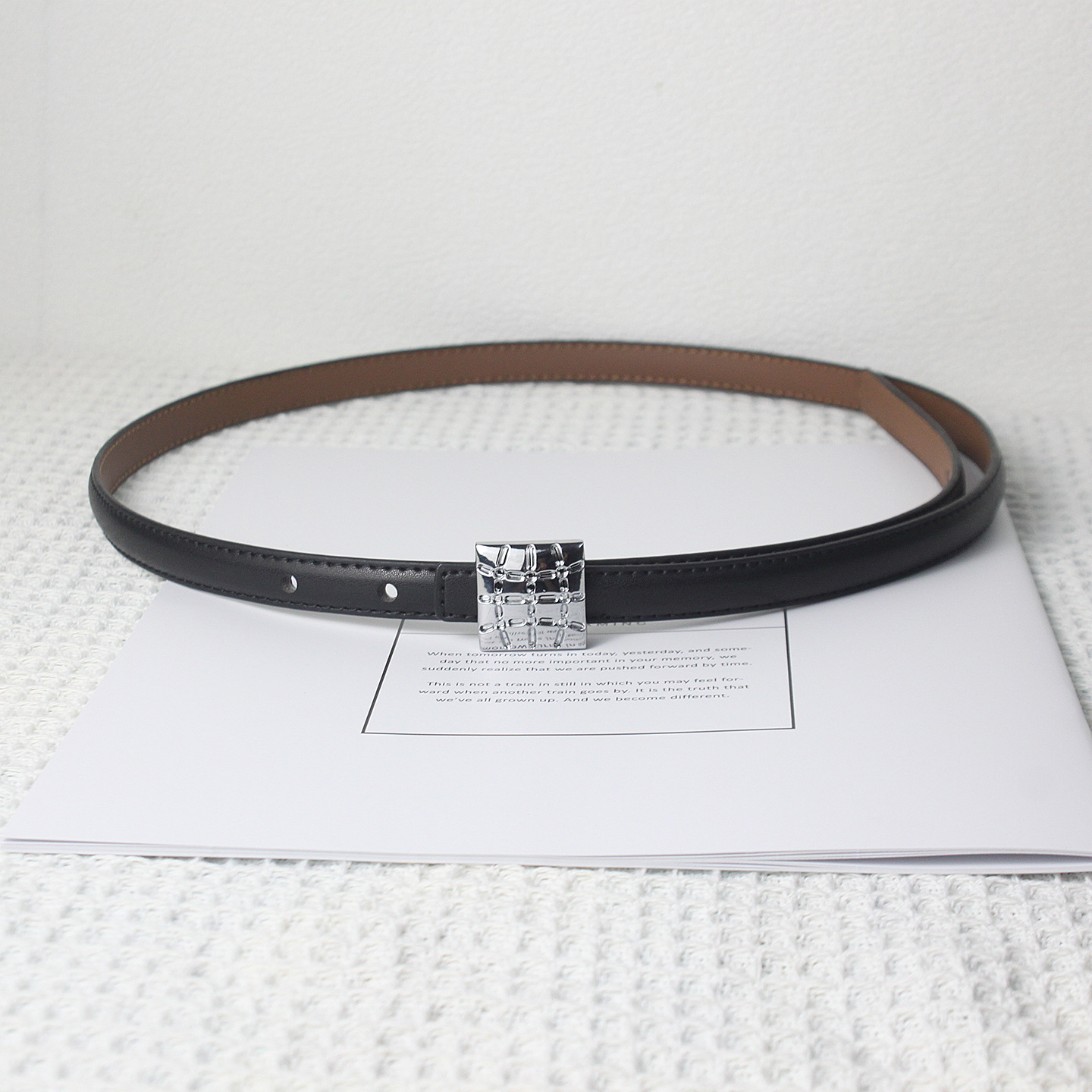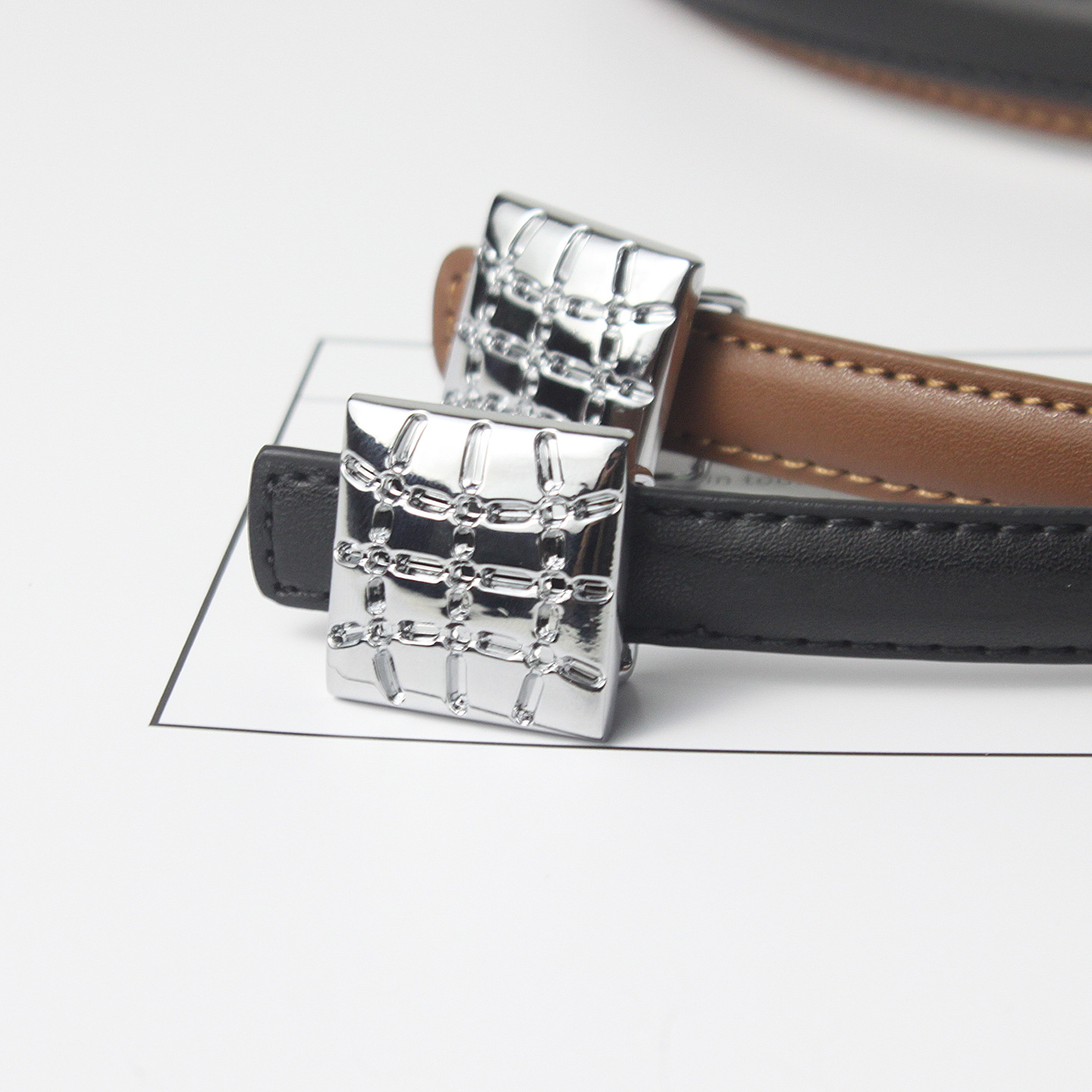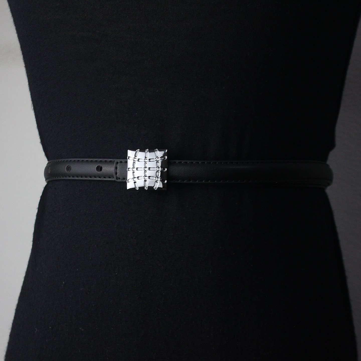 • 블랙 실버 스퀘어 버클 얇은 벨트
