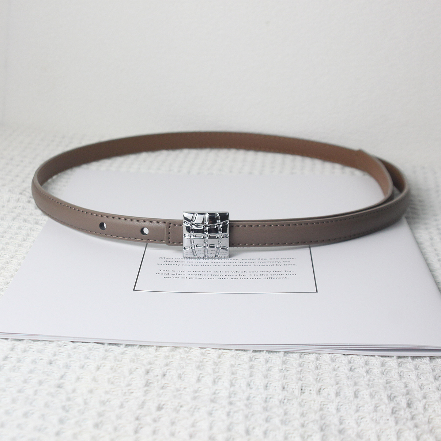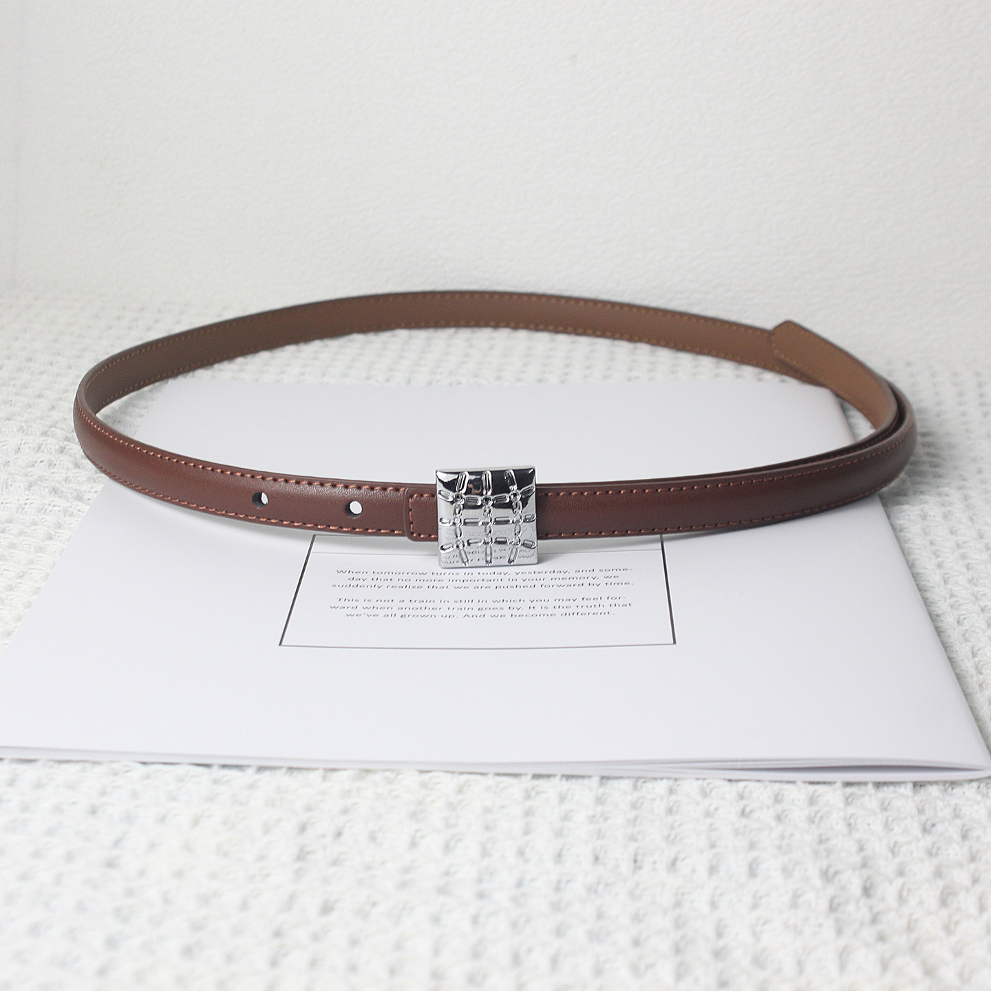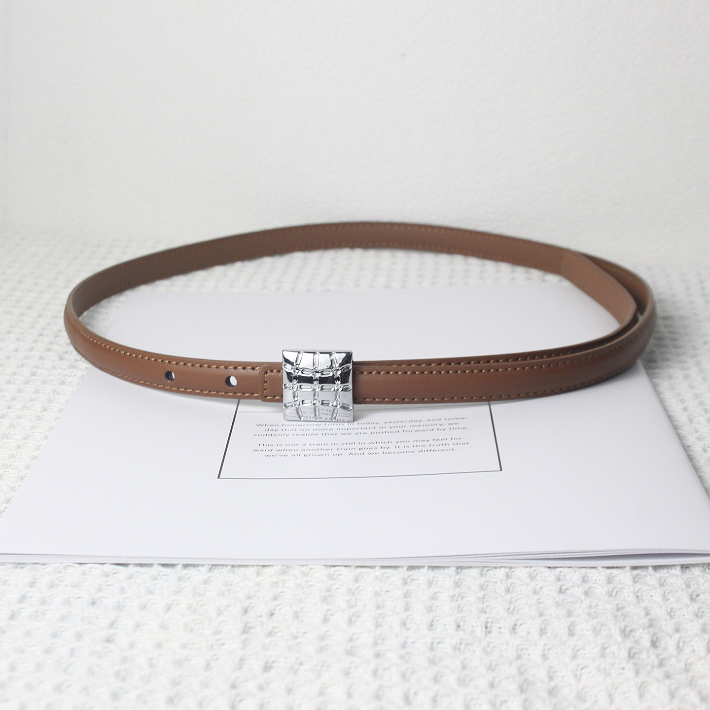 • 브라운 실버 스퀘어 버클 얇은 벨트