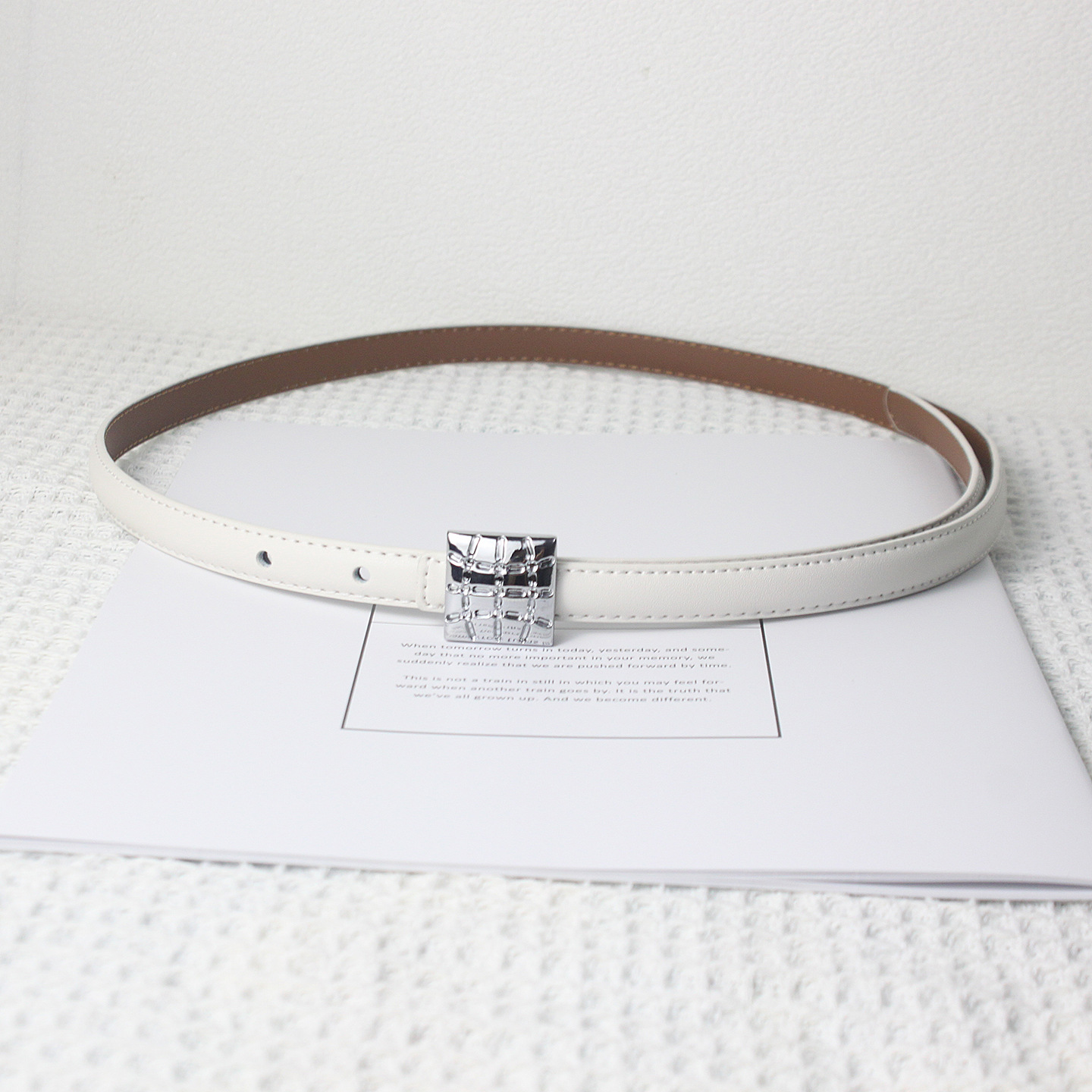 • 화이트 실버 스퀘어 버클 얇은 벨트