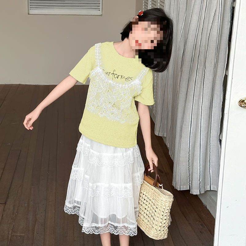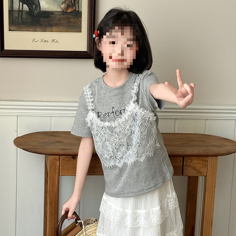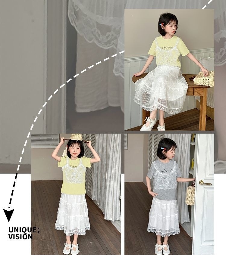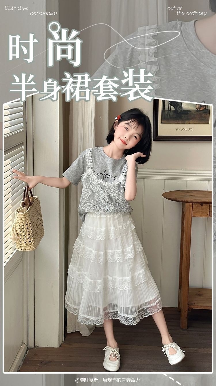 여자 공주 드레스 여름 정장 2025 새로운 어린이 메쉬 케이크 드레스 어린 소녀 유행 스커트 투피스 세트