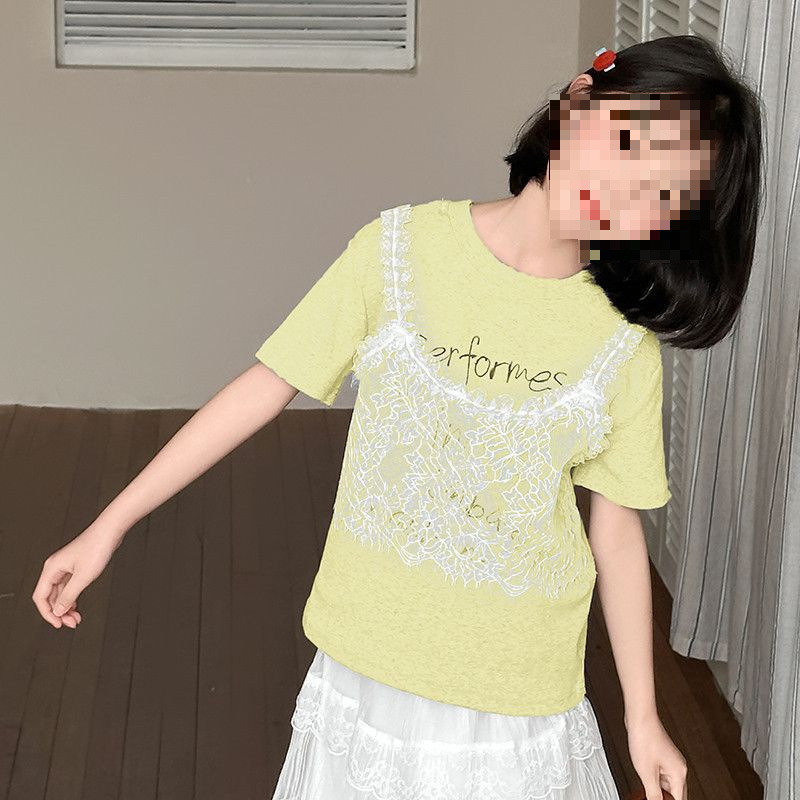 • 노란색 정장, 레이스 서스펜더 반팔 정장(무료) 목걸이 또는 안경