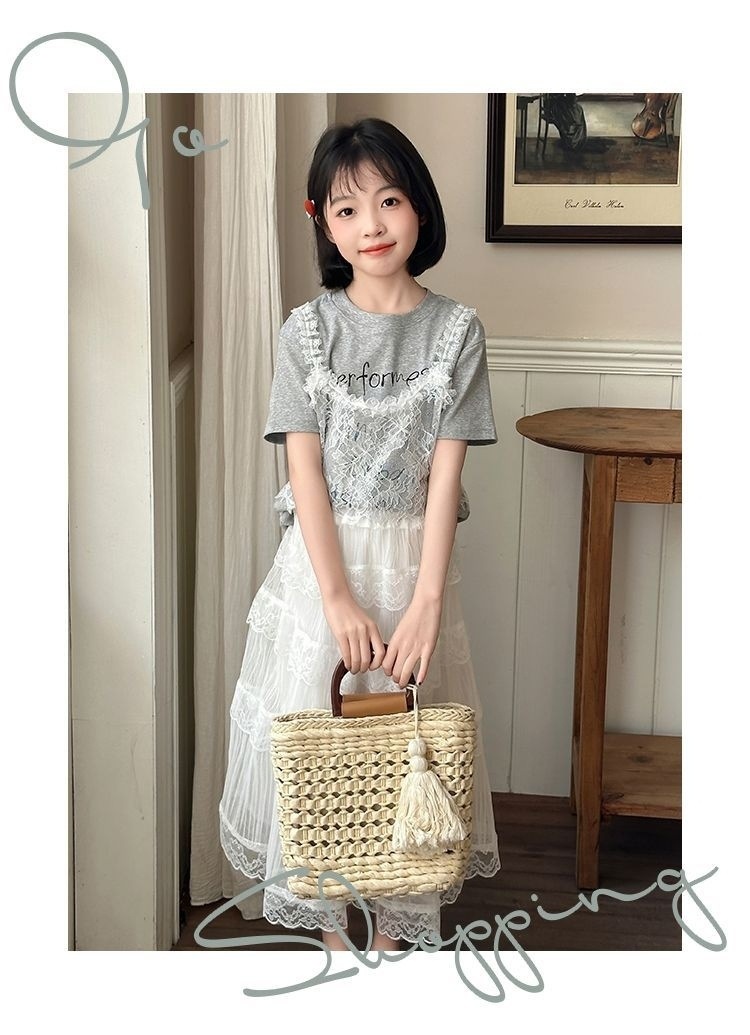 여자 공주 드레스 여름 정장 2025 새로운 어린이 메쉬 케이크 드레스 어린 소녀 유행 스커트 투피스 세트스토어 가기