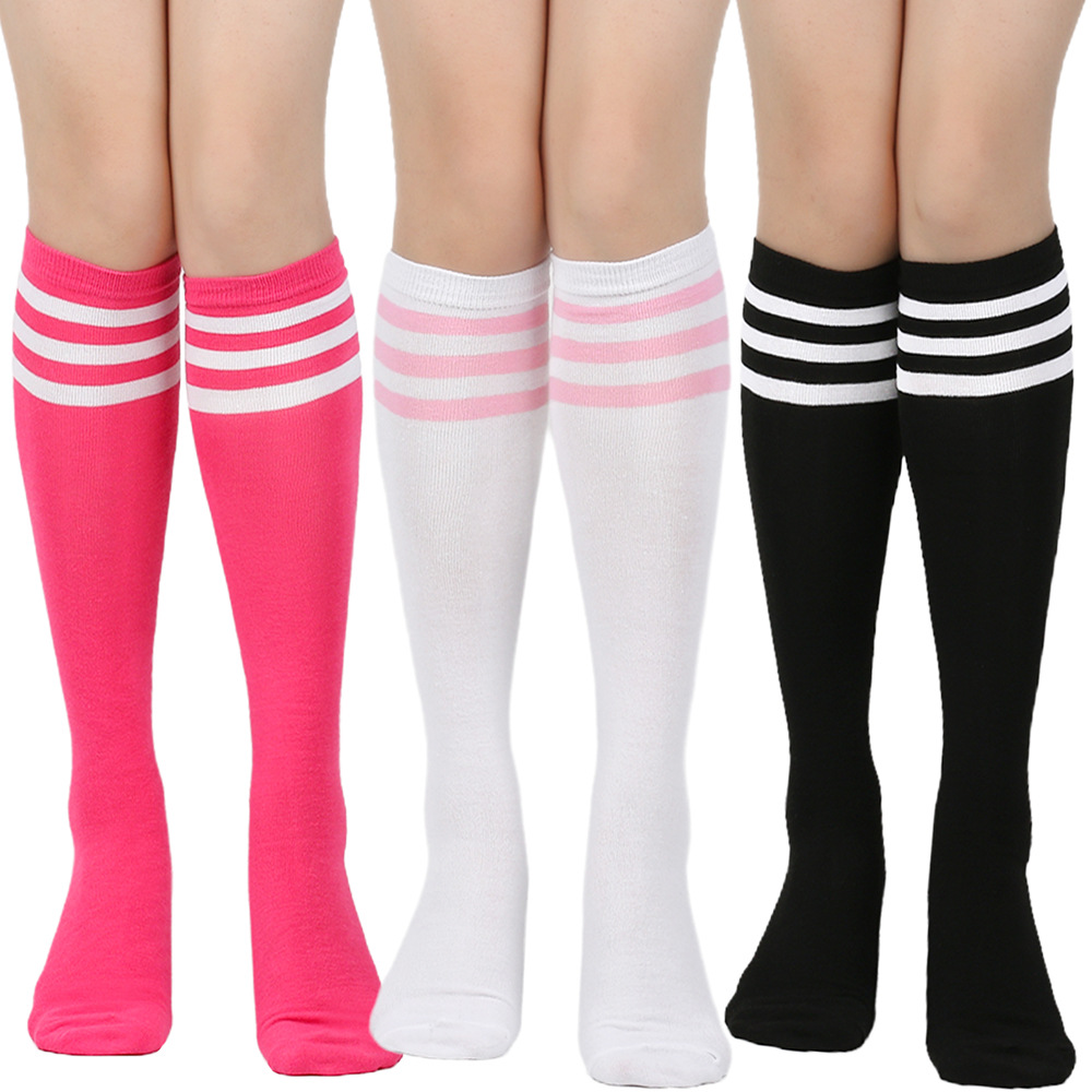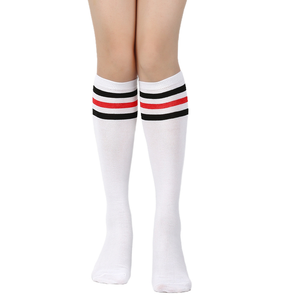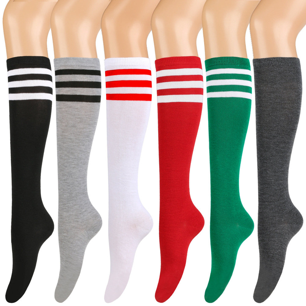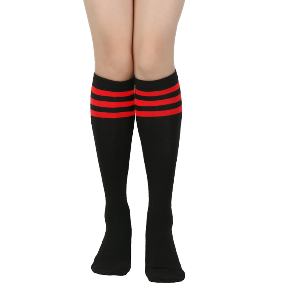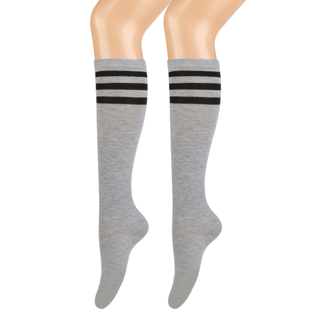 여성용 크로스보더 여름 3줄 스트라이프 종아리 양말, 블랙 코튼 니삭스, 스트라이프 양말, 유럽 및 미국스토어 가기