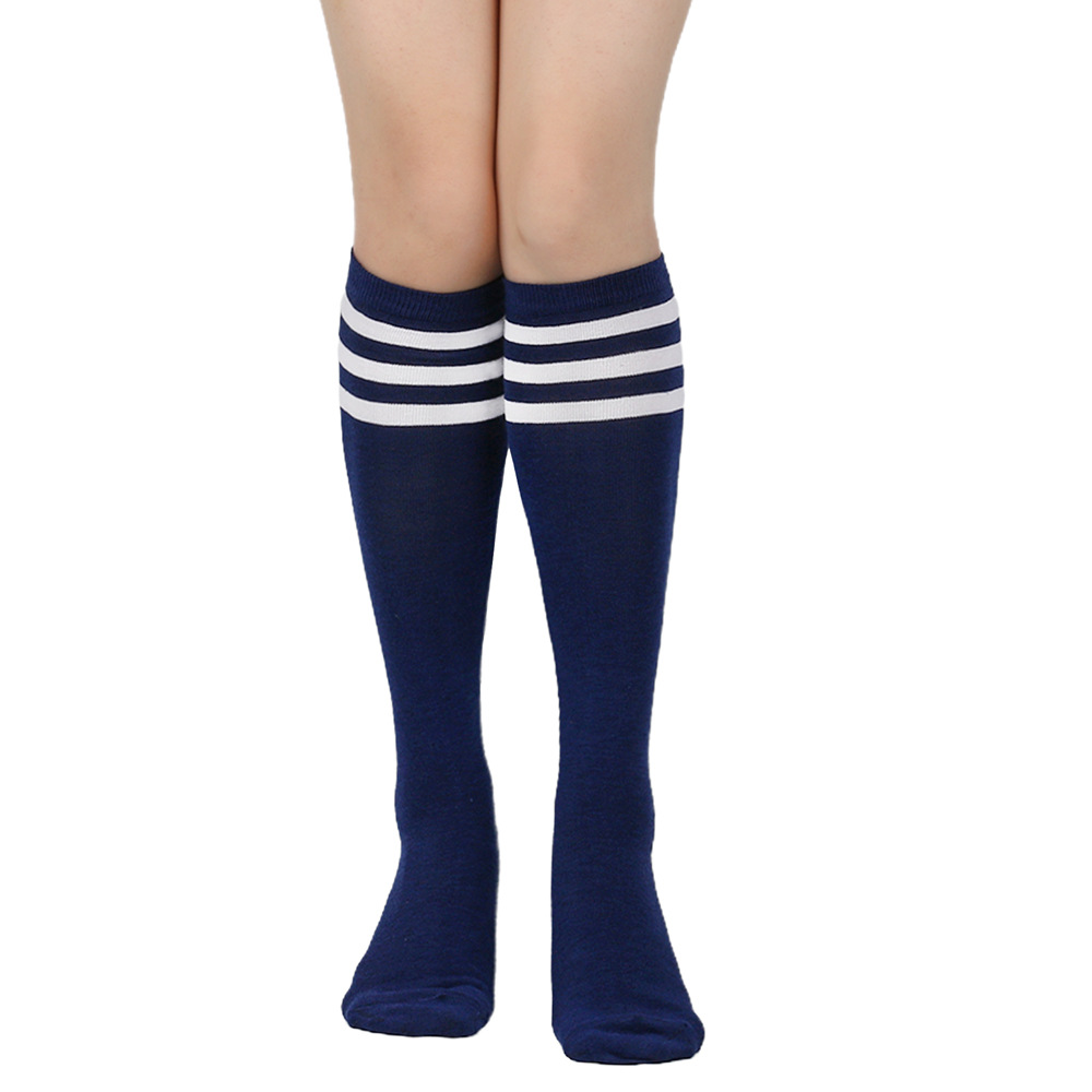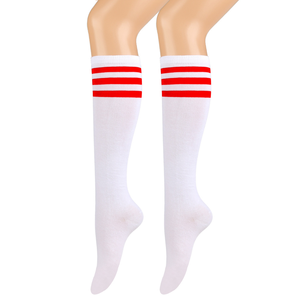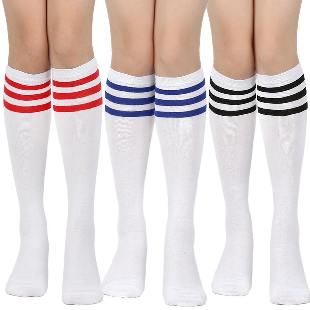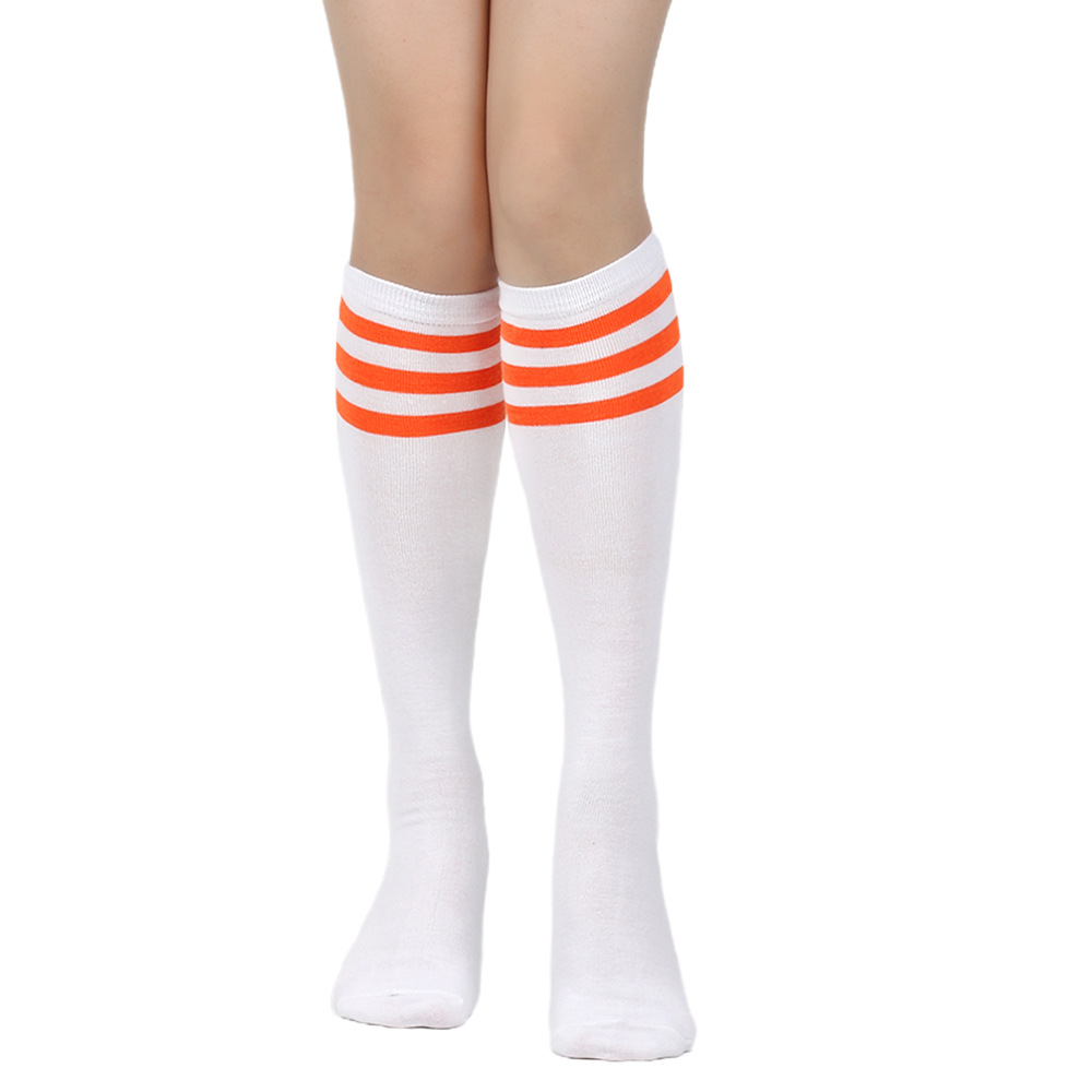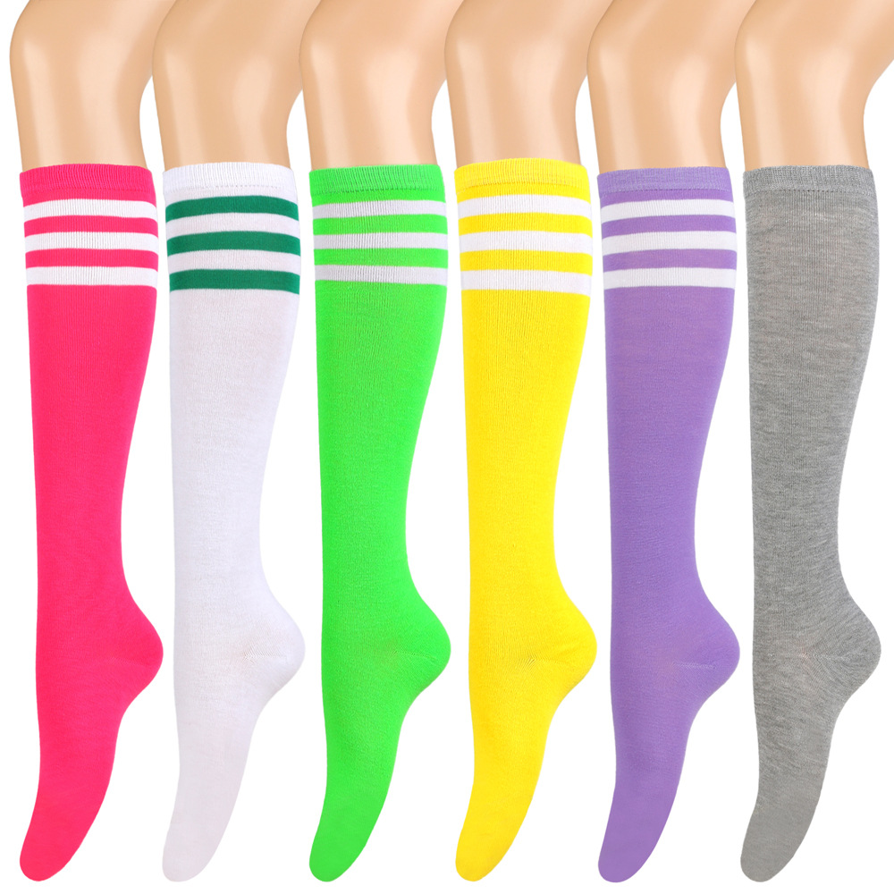 여성용 크로스보더 여름 3줄 스트라이프 종아리 양말, 블랙 코튼 니삭스, 스트라이프 양말, 유럽 및 미국스토어 가기