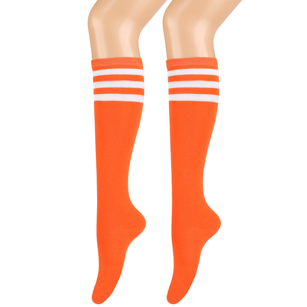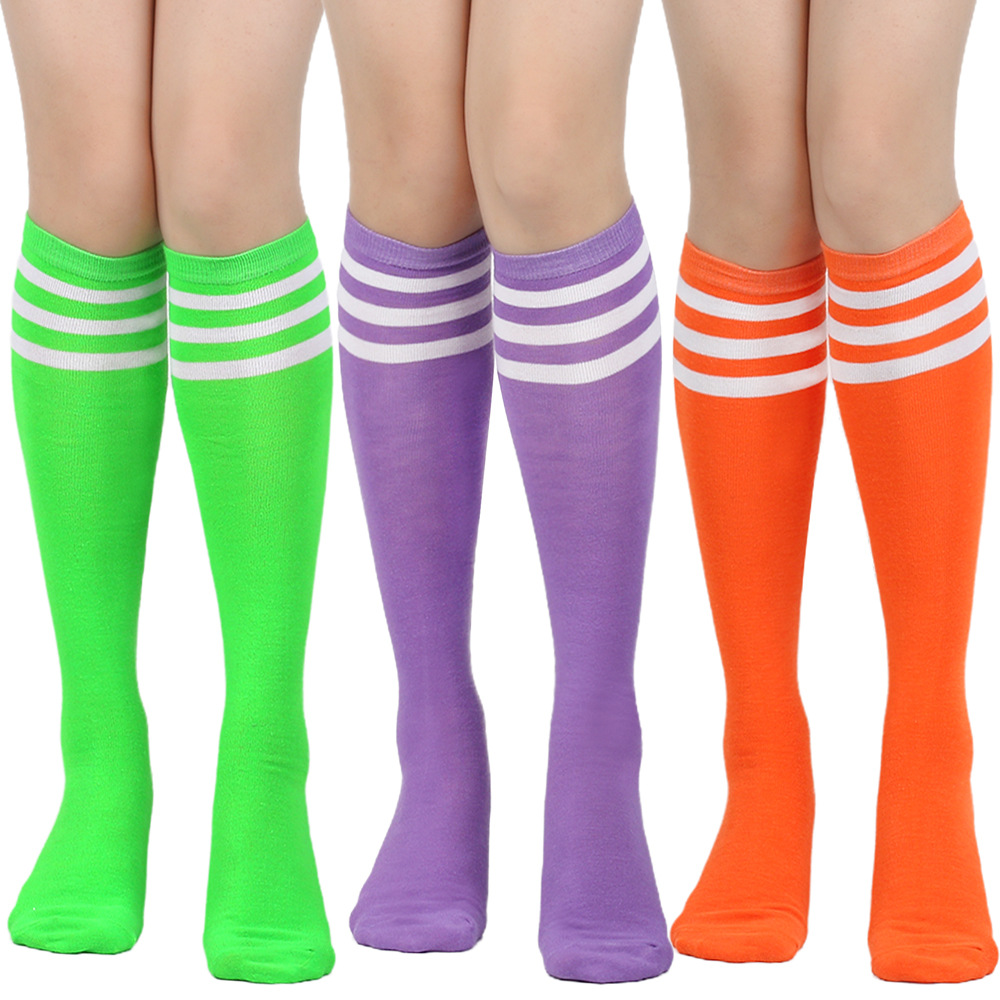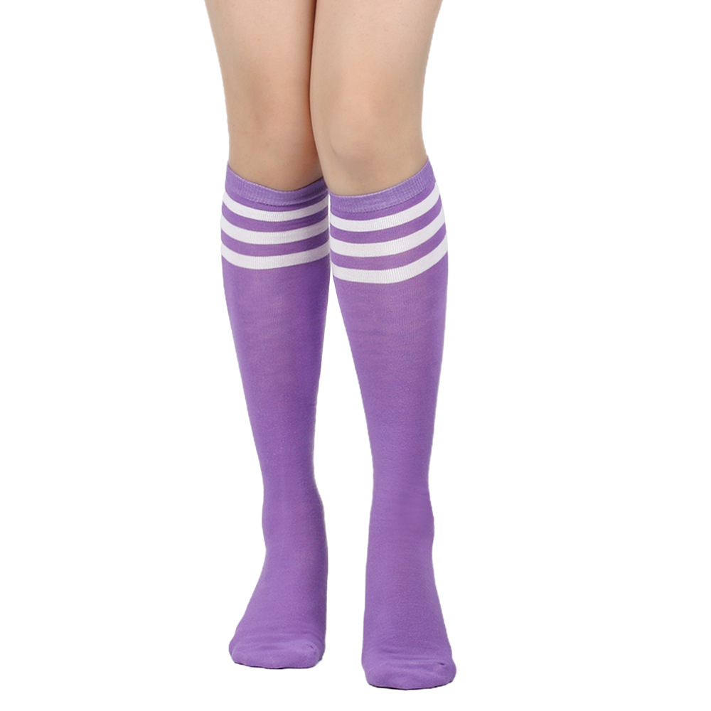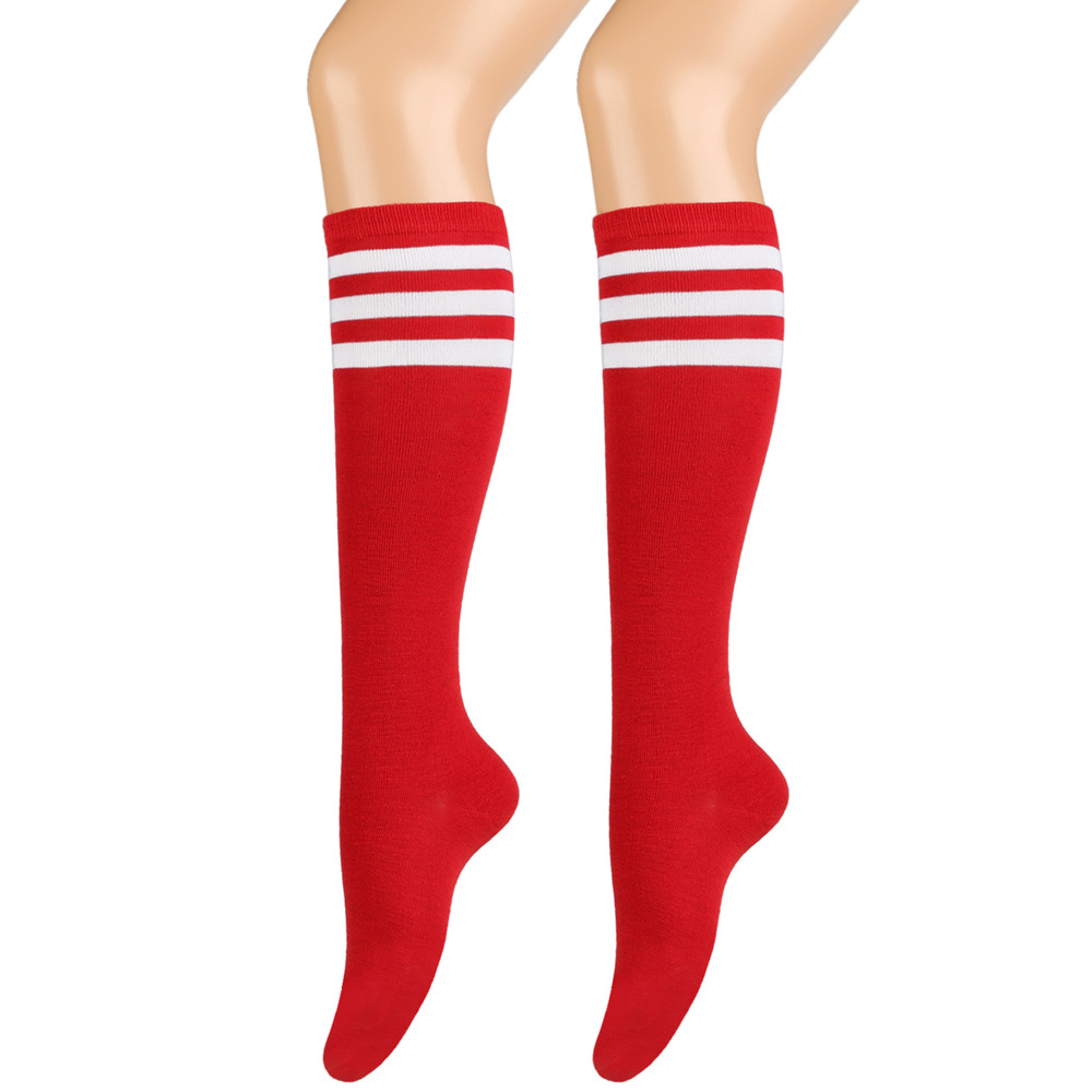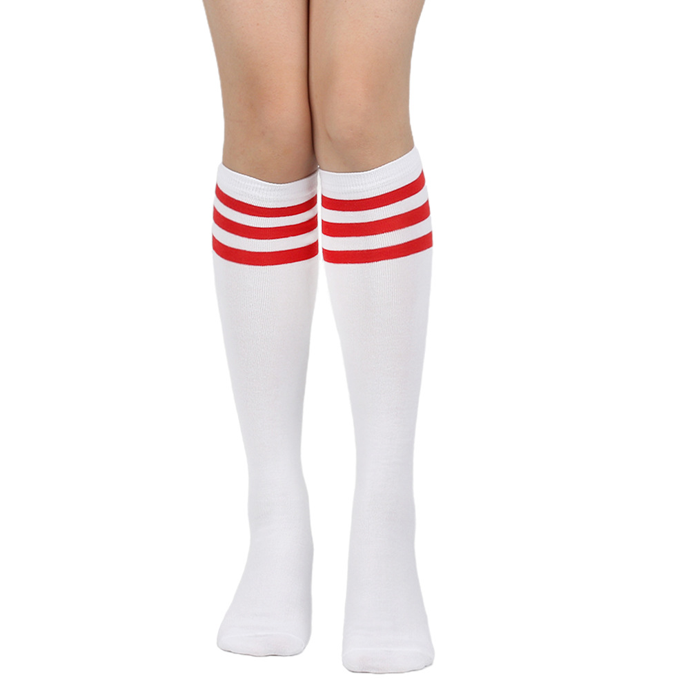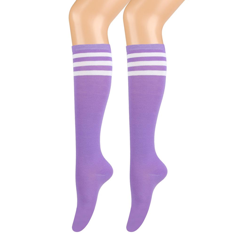 여성용 크로스보더 여름 3줄 스트라이프 종아리 양말, 블랙 코튼 니삭스, 스트라이프 양말, 유럽 및 미국스토어 가기