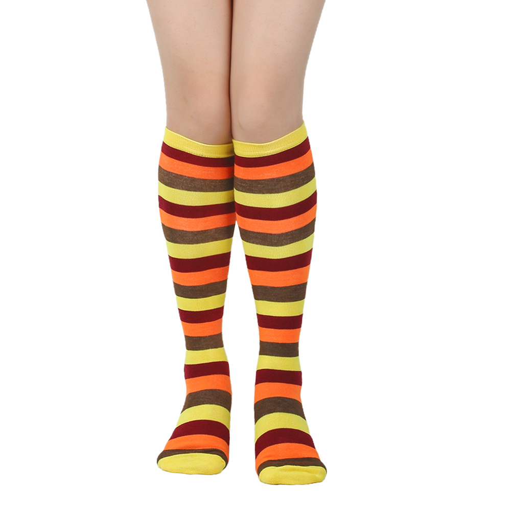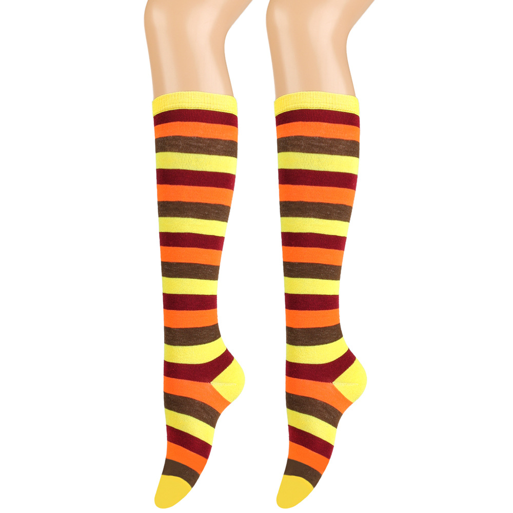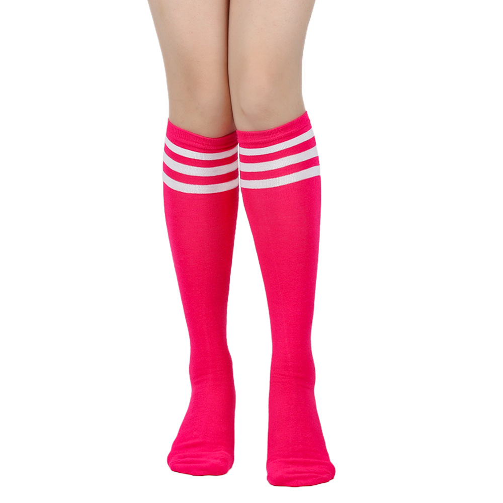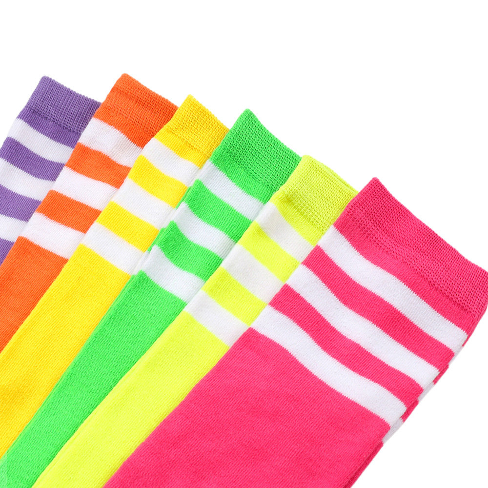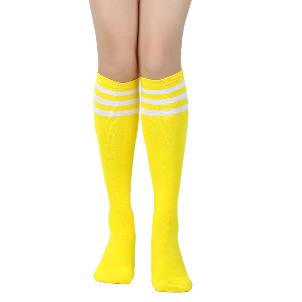 여성용 크로스보더 여름 3줄 스트라이프 종아리 양말, 블랙 코튼 니삭스, 스트라이프 양말, 유럽 및 미국스토어 가기