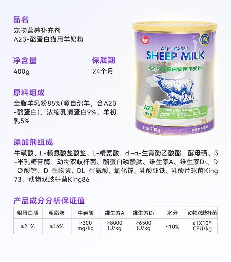 애완동물 분유 A2β-카제인 산양분유 새끼 고양이와 강아지 신생아 강아지 특수 영양 분유 400g