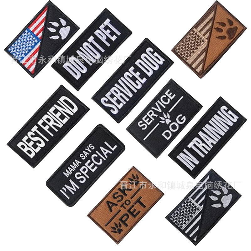 국경 간 공급 애완견 벨크로 채널 서비스 개 자수 천 스티커 영어 전술 가방�도 배지 패치 스티커스토어 가기