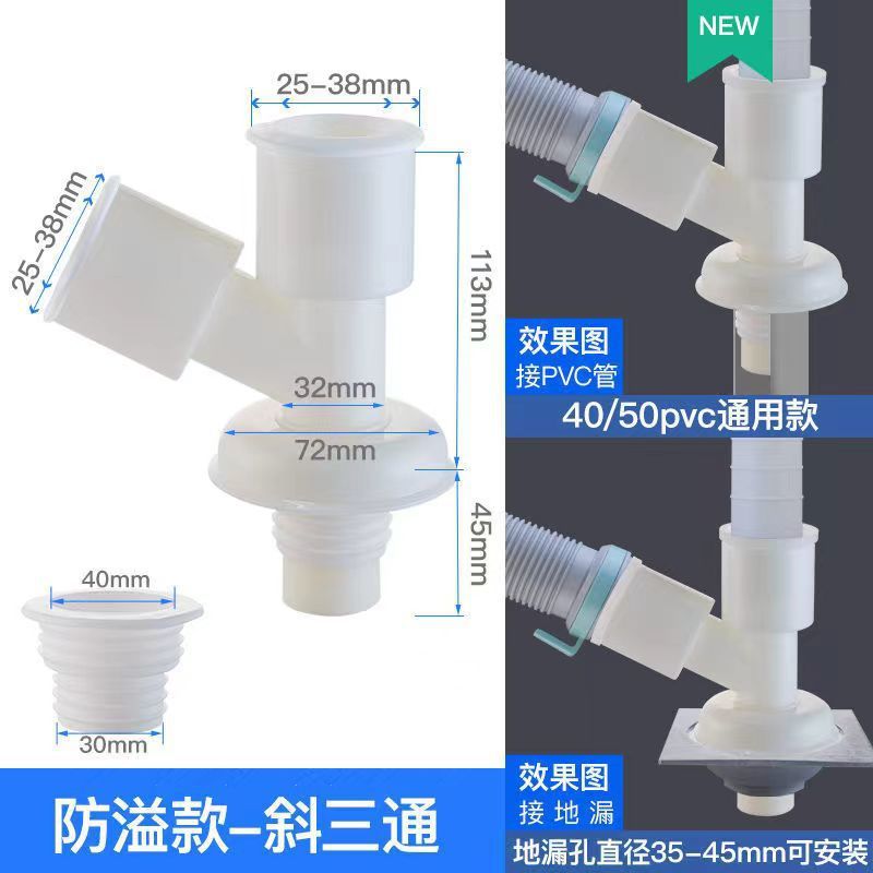 세탁기 하수관 3방향 바닥 배수구 커넥터 이중 목적 배수관 Y자형 분기 3방향 2-in-1스토어 가기