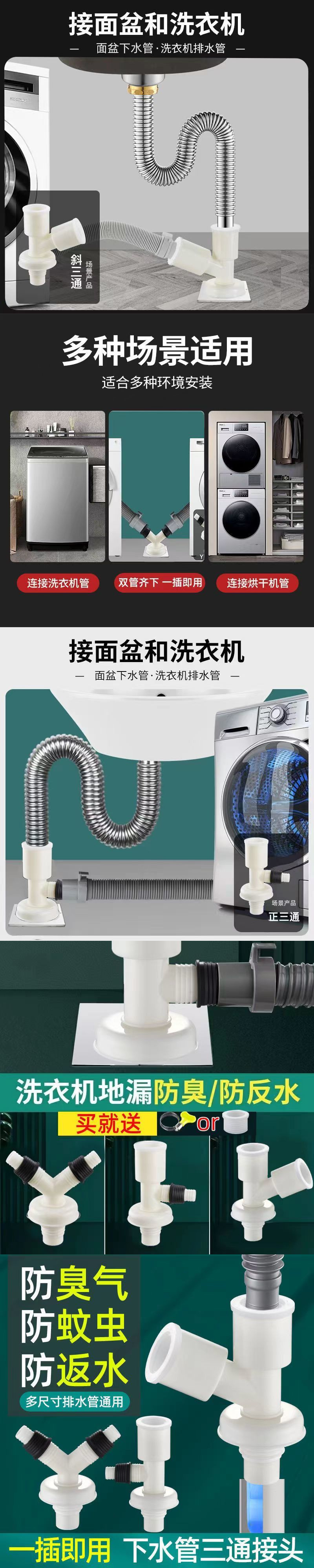 세탁기 하수관 3방향 바닥 배수구 커넥터 이중 목적 배수관 Y자형 분기 3방향 2-in-1