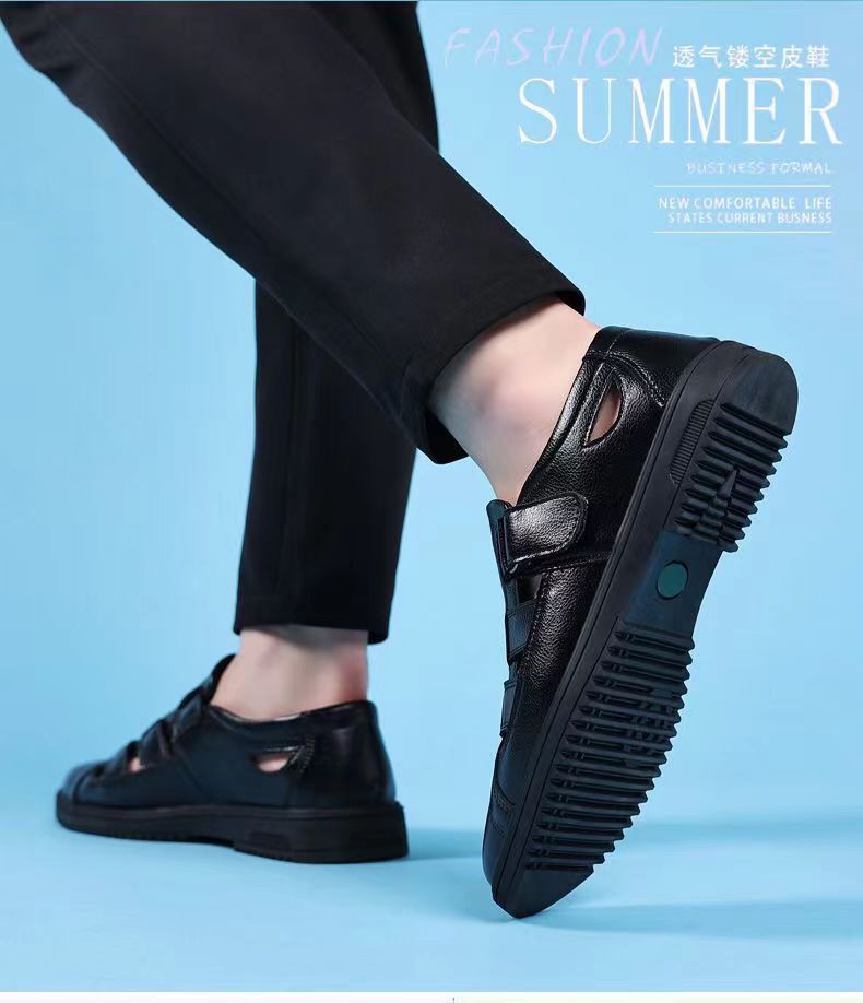 남성용 새로운 비즈니스 샌들, 캐주얼 웨딩 신랑 영국 샌들, 여름 통기성 청소년 뾰족한 남성 신발스토어 가기