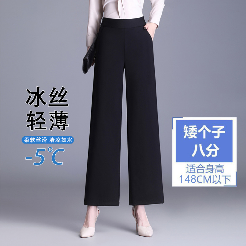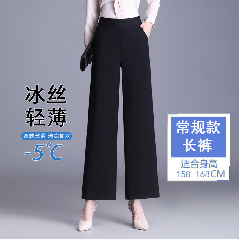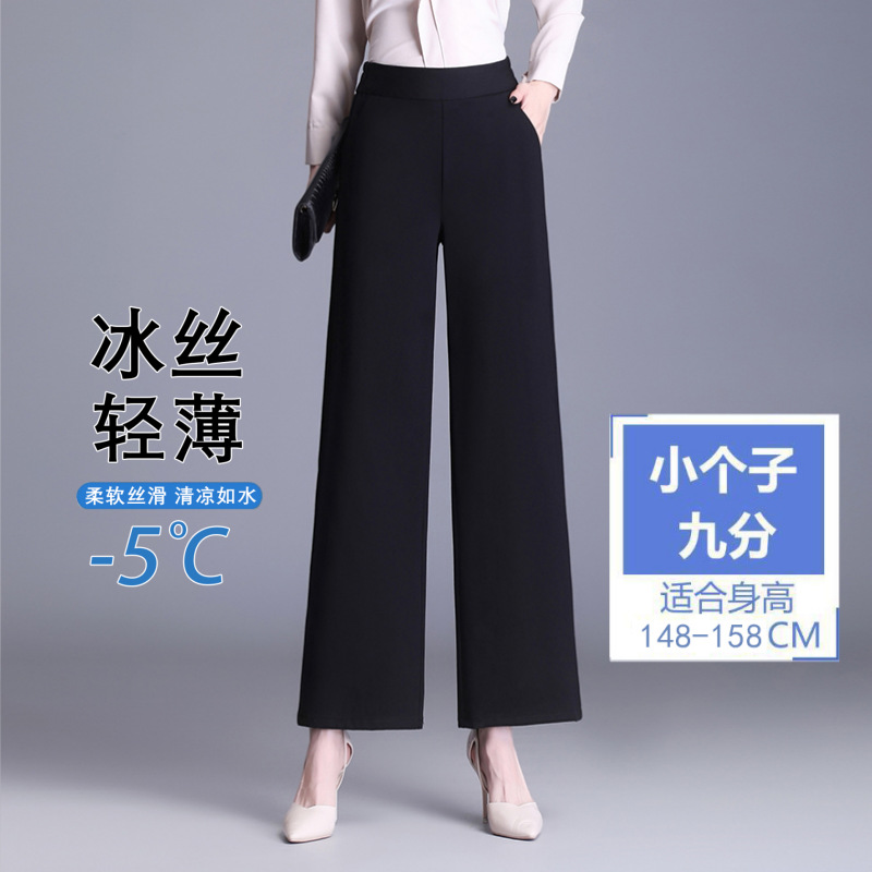 여름 얇은 느슨한 2025 새로운 하이 웨이스트 슬림 캐주얼 스트레이트 드레이프 바지 여성을위한 얼음 실크 좁은 와이드 레그 팬츠스토어 가기