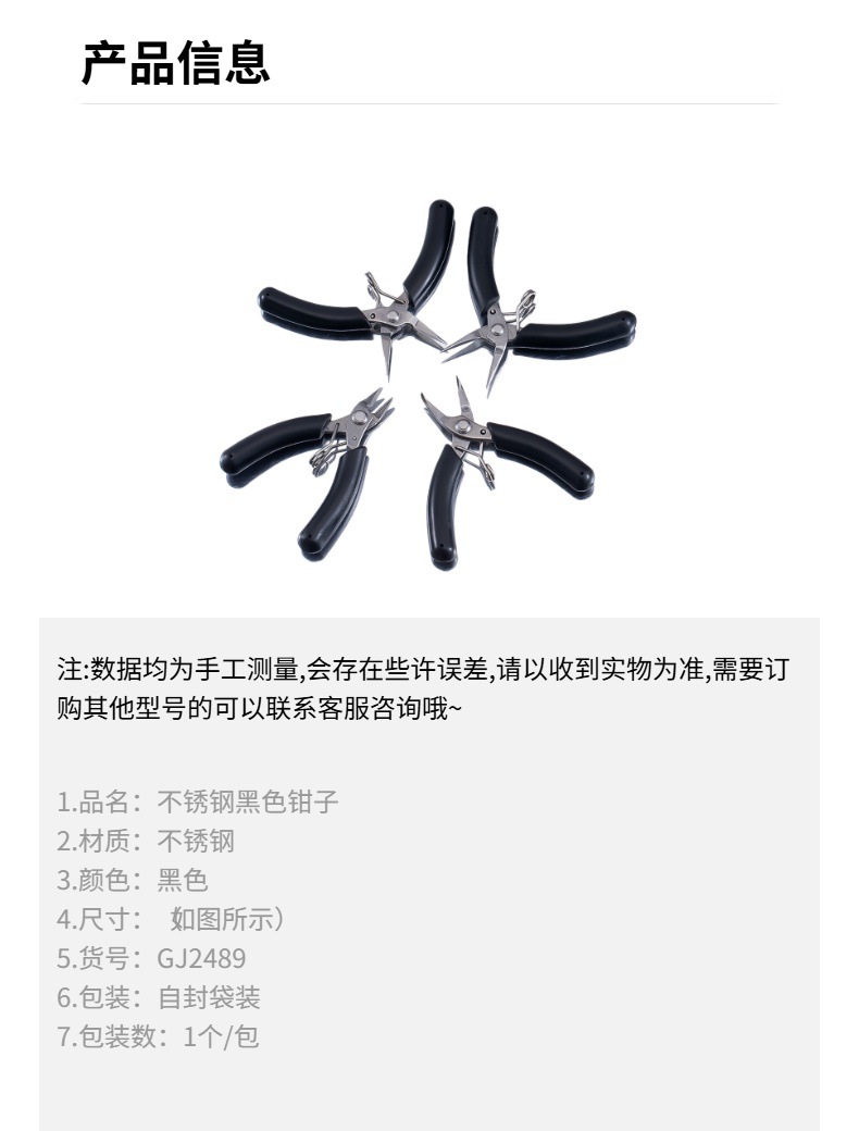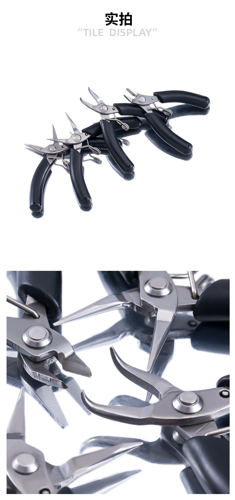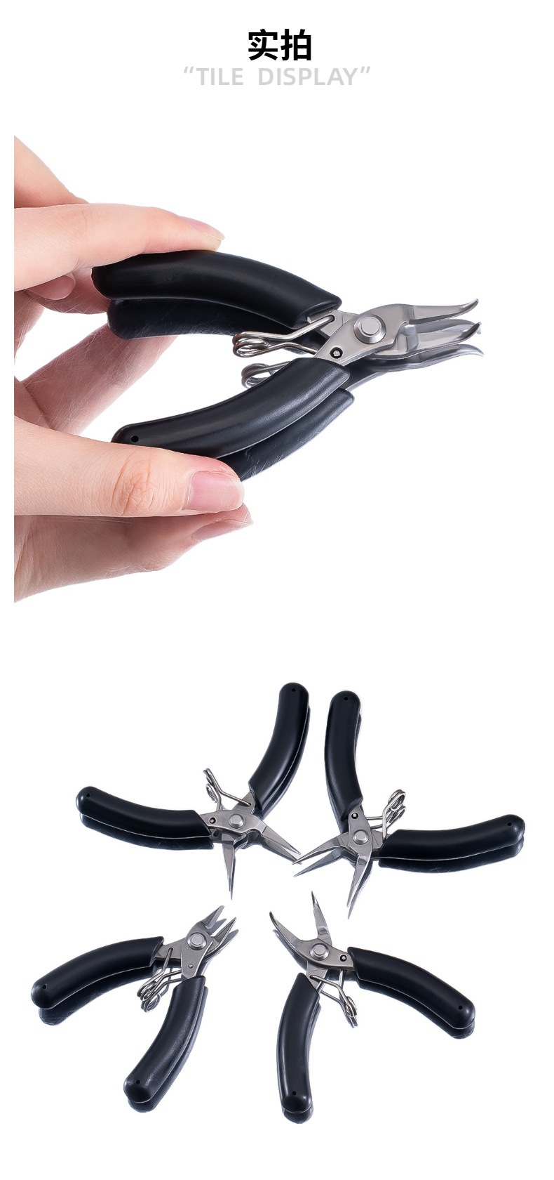 스테인레스 스틸 다기능 검정색 펜치 1팩, 경사진 입과 둥근 입 펜치, 간단한 수제 보석 제작 펜치