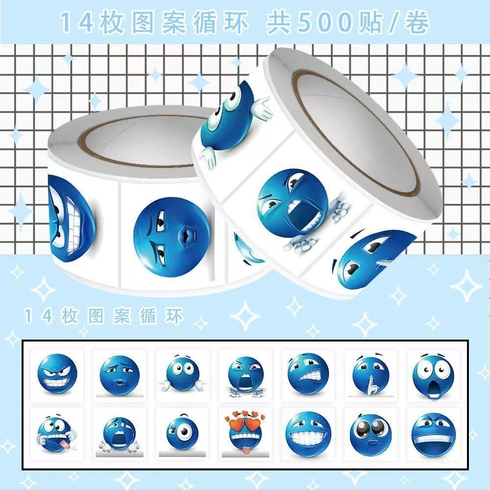크리 에이 티브 emjio500 스티커 작은 파란색 콩 이모티콘 팩 롤 스티커 재미있는 이모티콘 팩 재미 있은 추상 스티커 도매 가능스토어 가기