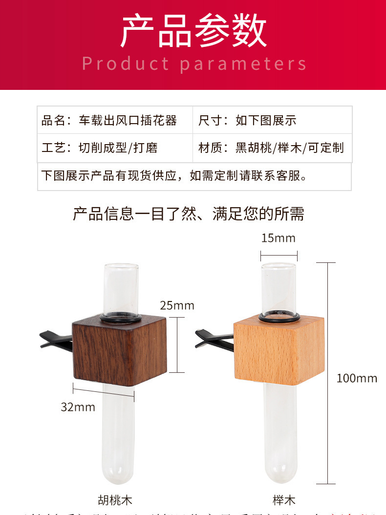• 차량용 꽃꽂이 - 호두나무 1개 [시험관 없음, 클립 없음]