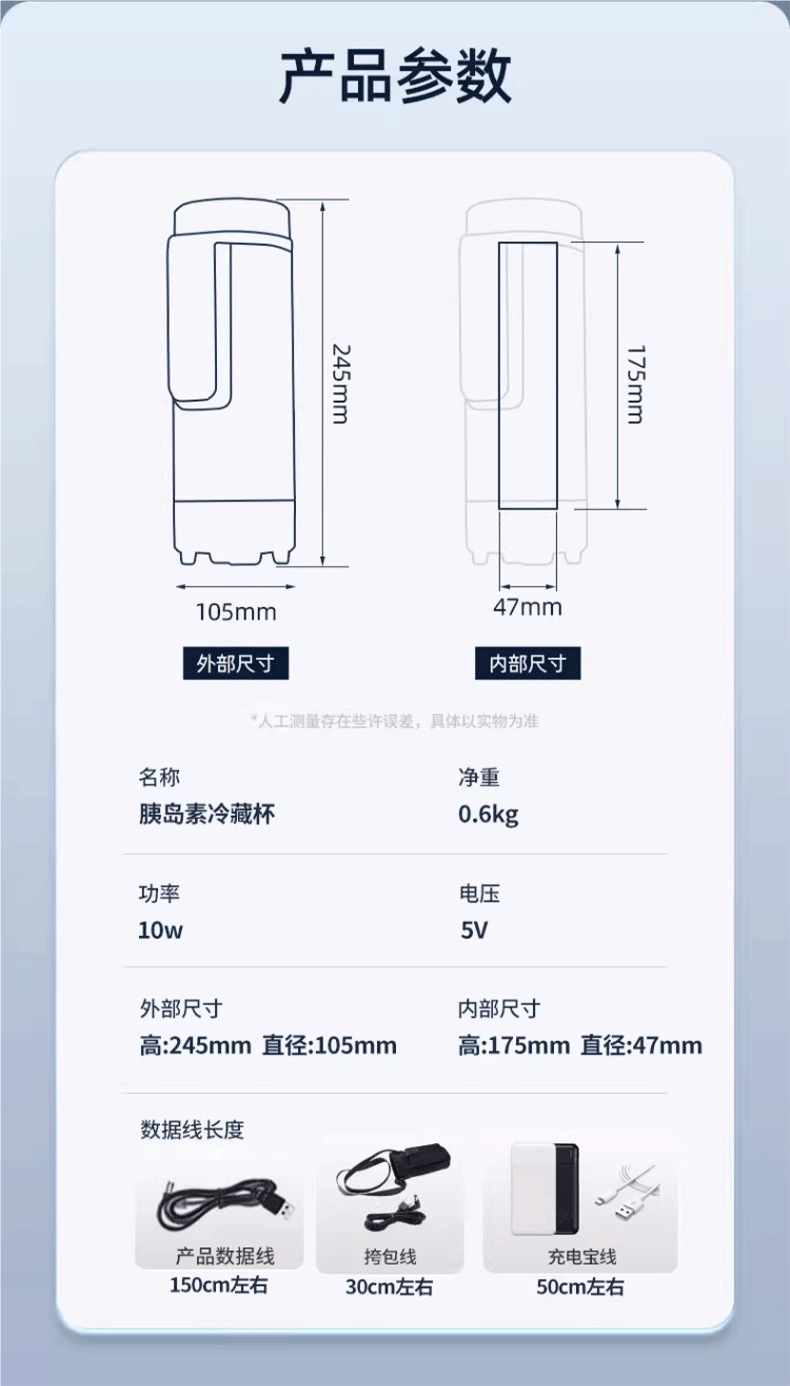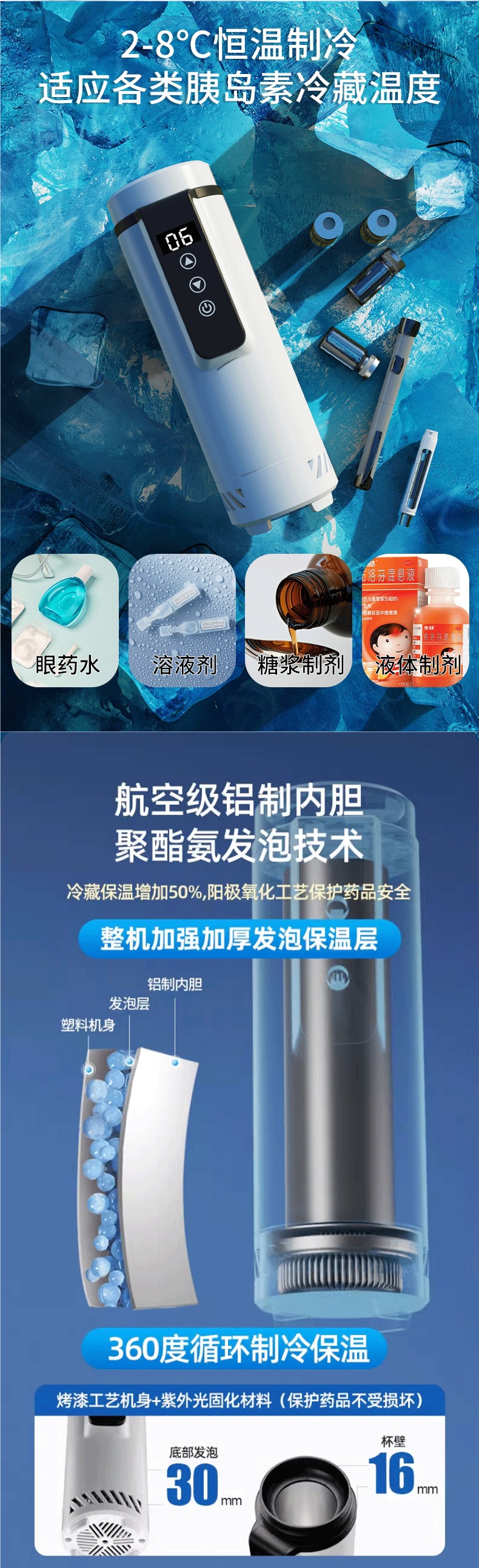 인슐린 냉장 컵 휴대용 충전식 자동차 가정용 소형 의약품 냉장고 휴대용 냉동 컵